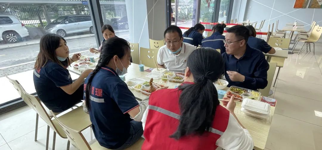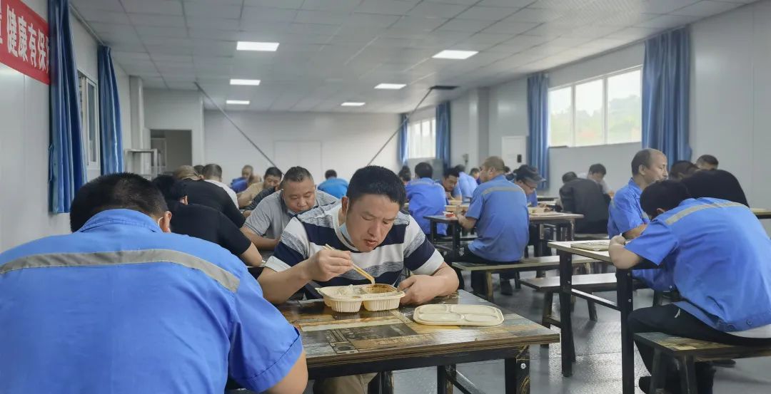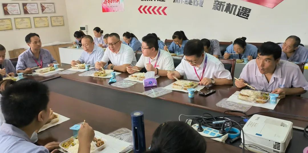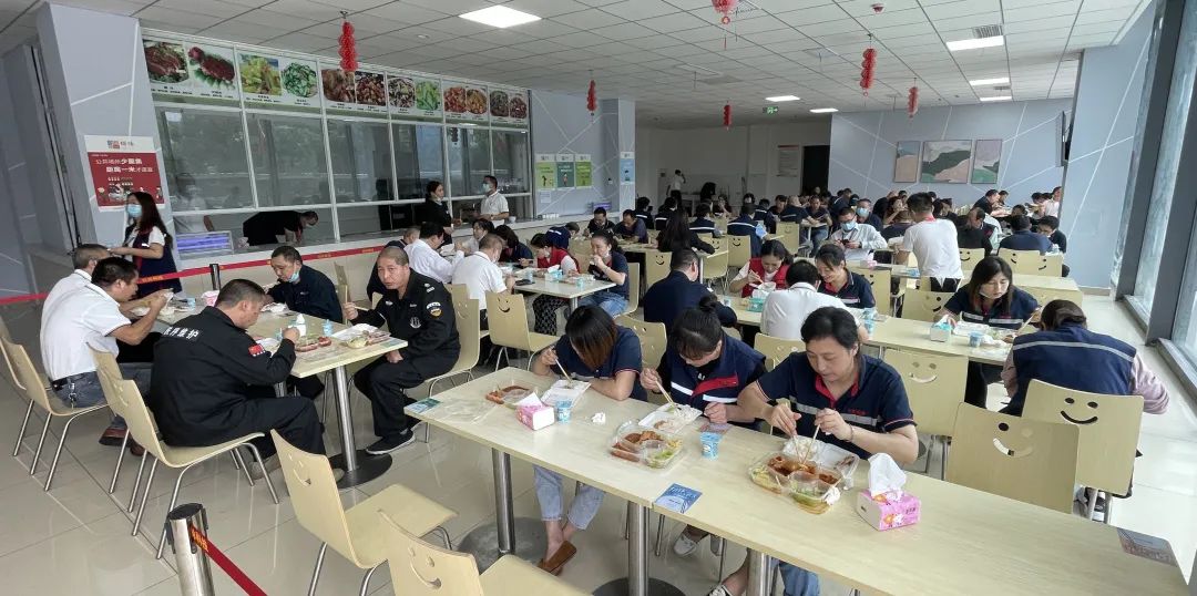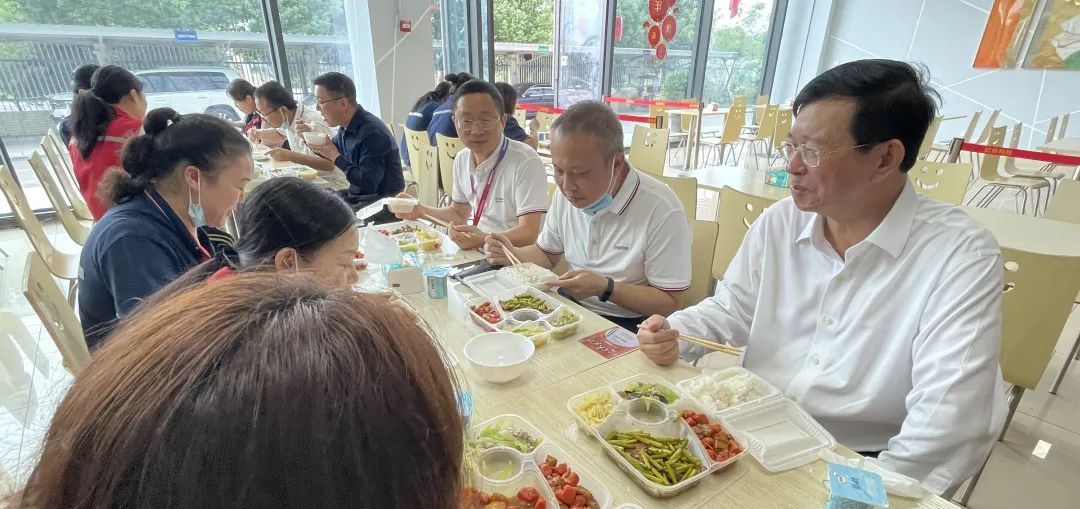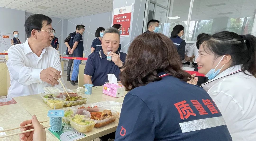 在阵阵机器轰鸣声中,各单位工作有条不紊,员工们铆足干劲,忙生产、保订单。谭明献副书记和李伟总经理走进工厂,详细了解生产单位目前的防疫物资储备、生产原辅材料及物流等基础后勤保障情况,特别是员工的住宿、淋浴、业余生活等情况进行了关心了解,随后来到食堂与员工们共进午餐。过程中,他们向相关单位负责人特别强调,要一手切实抓好疫情防控,一手全力以赴抓生产交付物流通畅,要充分做好后勤保障,让员工在闭环管理中住得安心、工作得放心。