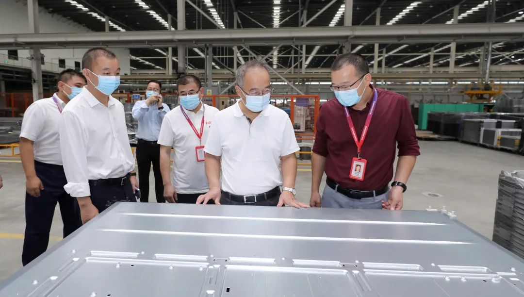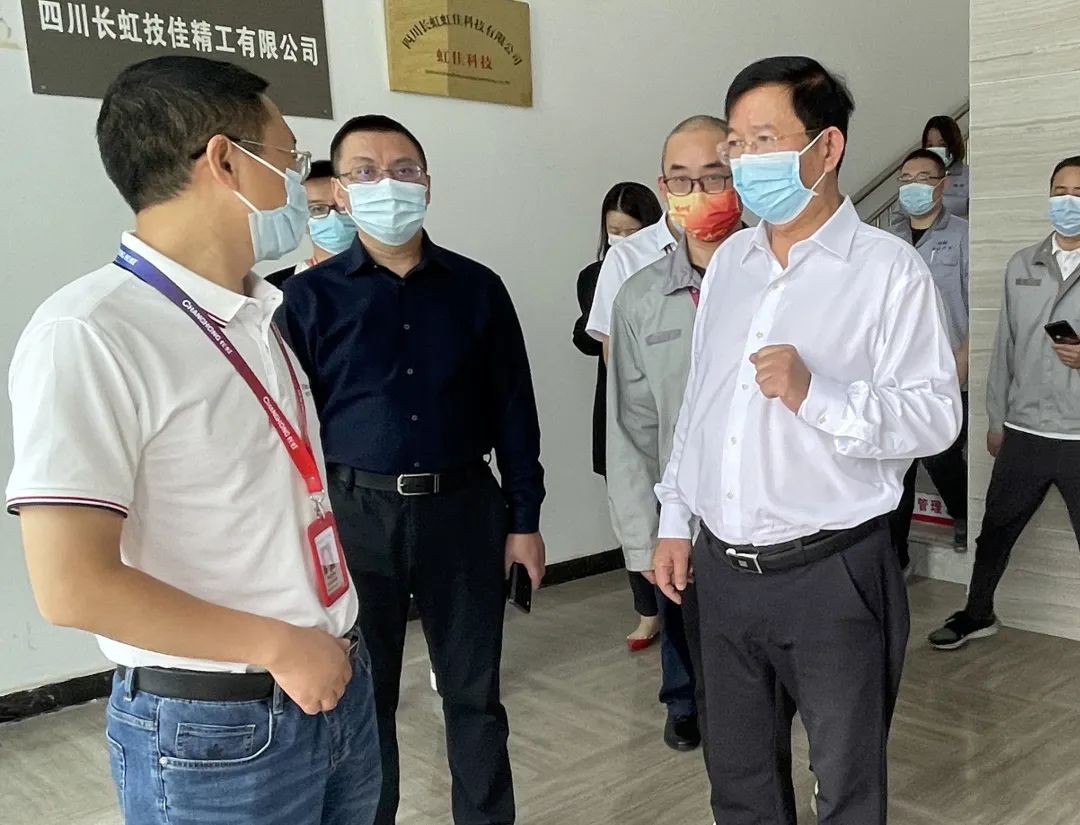 10月2日上午,控股集团党委副书记谭明献,控股集团党委委员、股份公司总经理李伟一行,来到长虹智能制造产业园,关心慰问了闭环生产中的长虹技佳、长虹模塑和网络公司员工。
