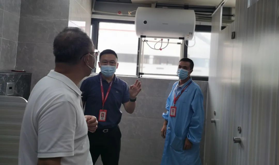 在了解到员工住宿洗澡不便而所购热水器迟迟未到的问题后,赵勇董事长对吴定刚副总经理和杨秀彪总助提出要求,想尽一切办法在今晚完成热水器的加装,让员工在“防疫泡泡”的闭环运行中洗上热水澡。
