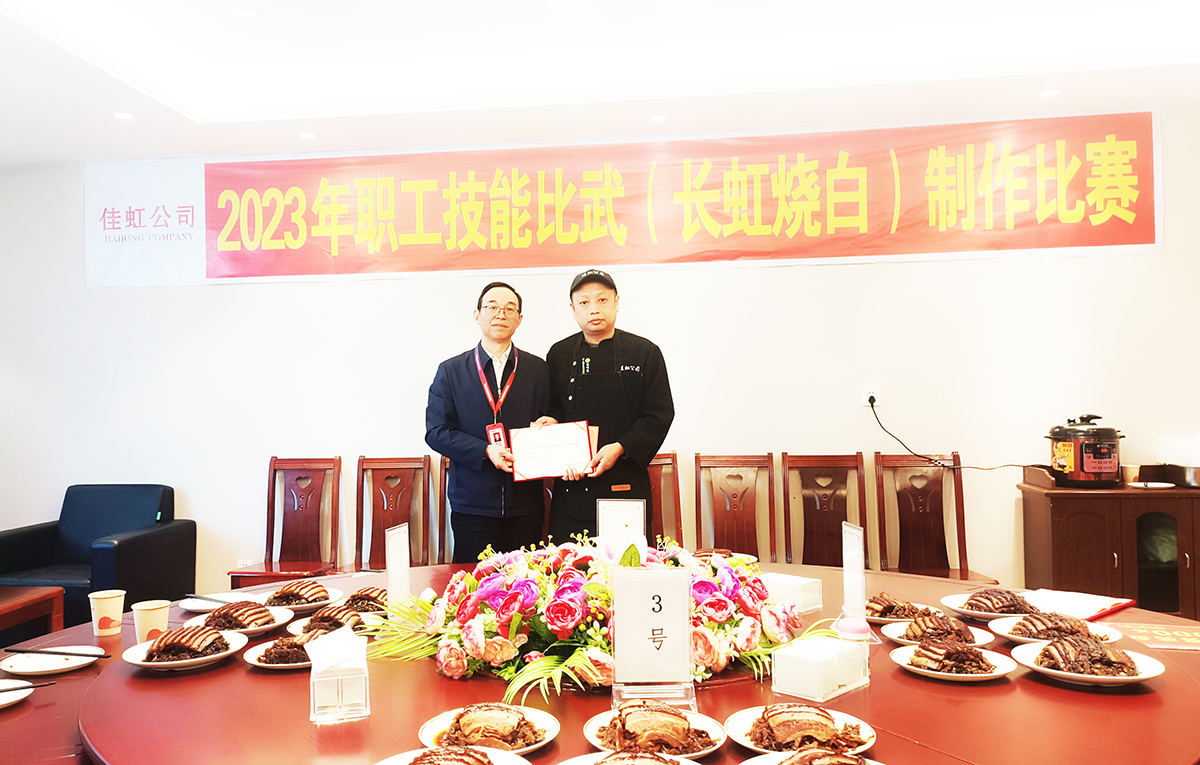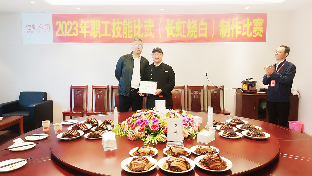 为进一步提升餐饮团队的专业技能水平,充分发挥餐饮团队的职业技能,激发餐饮团队学技术、钻业务的热情,为长虹职工提供可口、品质的膳食服务,佳虹公司工会于在经开区二食堂举办了“2023年度职工专项技能比武(长虹烧白)制作比赛”。 #长虹烧白 比赛前,各食堂参赛队以抽签方式进行分队,随后各队密切配合,在规定时间内协同完成了“长虹烧白”的蒸制。 在品评环节,由佳虹公司董事长李国强、佳虹公司总经理雍涛、综合部经理郝培忠、分工会主席冯俊岭、餐饮部经理夏廷锡及两位技术骨干共7位组成评委,从色、香、味、形、刀功、装盘、汁水等维度对参赛作品进行评分。 最终,安州分公司食堂参赛队获得本次厨艺技能比赛一等奖,河边食堂参赛队获得本次厨艺技能比赛二等奖。 佳虹公司董事长李国强、总经理雍涛为获奖团队颁发了荣誉证书及奖金。李总对餐饮团队的工作给予了肯定,鼓励餐饮团队职工提高技能技艺,在职工“吃得好、吃得香、吃得营养、吃得健康”等方面多花心思、多下功夫。雍总希望通过传统特色菜肴“烧白”的技能比武,能更好的为广大职工提供可口的工作餐,同时希望将餐饮服务延伸长虹职工的家庭,加班回家能够迅速吃上可口的饭菜,为奋战四季度排忧解难。 佳虹餐饮团队一直高度重视食品安全、环境卫生以及菜品质量等工作,不定期对餐饮团队开展相关培训活动。在今后的工作中,佳虹餐饮团队将推出更多营养可口的菜品,以满足广大职工的用餐需求。比赛在欢乐、和谐、愉快的氛围中圆满结束。 目前,佳虹公司正在提供烧白预售服务,价格为大份的14元/份(供1-2人用餐),小份的11元/份(供1人用餐),长虹职工可以每周三之前在各个食堂预订,两中心职工在商贸中心大厅虹咖啡处预订,周五中午在预定点领取。