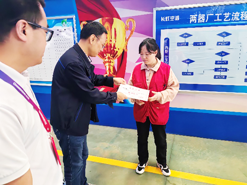 2023长虹空调旺季奋战“三个再提升”竞赛活动自2月启动以来,公司各部门团结协作、全力以赴,保安全、稳质量、提效率、抢时间、赶进度,以“旺季奋战我拼,对标对阵我能”的姿态投入旺季奋战,涌现出许多攻坚克难,加班加点、保质保量完成生产任务的职工和班组,有力保证了产品按时交货。在全体职工的共同努力下,3月整机下线58.12万套,创造了长虹空调产量新纪录! 表彰活动 4月26日上午,长虹空调旺季奋战“三个再提升”行动3月表彰活动隆重进行。公司党政领导来到职工工作岗位和班组所在地,为两器厂芯体加工班1组等8个先进班组和谢艳等50名先进个人逐一颁奖,并鼓励广大职工强学习、守初心、担使命,善谋实干、善作善成,争做公司高质量发展的奋进者、开拓者、奉献者。 劳动最光荣,奋斗最出彩。 长虹空调广大职工比学赶超、奋勇争先,学习“标兵”精神,持续奋战,将在今后的工作中努力创造更好业绩,为实现年度目标奋勇拼搏! 2023 奋进长虹!