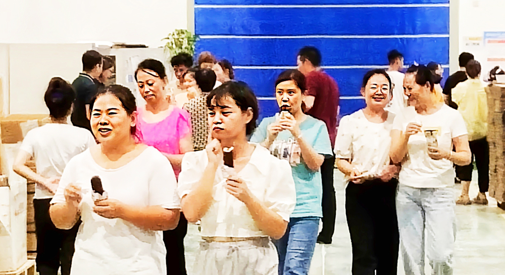 近日,绵阳区域气温居高不下,多次发出高温橙色红色预警,为了应对高温和限电对公司正常生产造成的不利影响,激光公司多措并举,调整生产时间和节拍响应避峰用电,尽量少开空调,节约每一度电。对于坚守在一线的作业人员,公司本着以人为本、亲和待人的核心理念,力争让职工满意! 8月16日下午,公司领导,制造部长亲自给车间员工送上了冰冰凉凉的冰糕。让不畏高温坚守一线的员工们感受到一丝清凉。 ✦ ✦ 一根冰糕,一丝凉爽;一份关怀,一股动力。车间里,员工们拿着刚刚领到的冰糕细细品味着,有的员工拿到冰糕后,对于这份“意外惊喜”嘴角露出了笑意,从他们的脸上可以看出这冰糕不仅凉在了嘴上,而且甜到了心里。 ✦ 冰糕有价,关爱无价。尤为可贵的是公司为职工所想,急职工所需,也让车间工人们深深地为之感动。这丝丝冰爽,这抹抹甜意,都化作了他们对工作的热情,以更加积极的态度去度过高温天气,以更加强大的干劲去创造激光公司的美好未来。 ✦ ✦