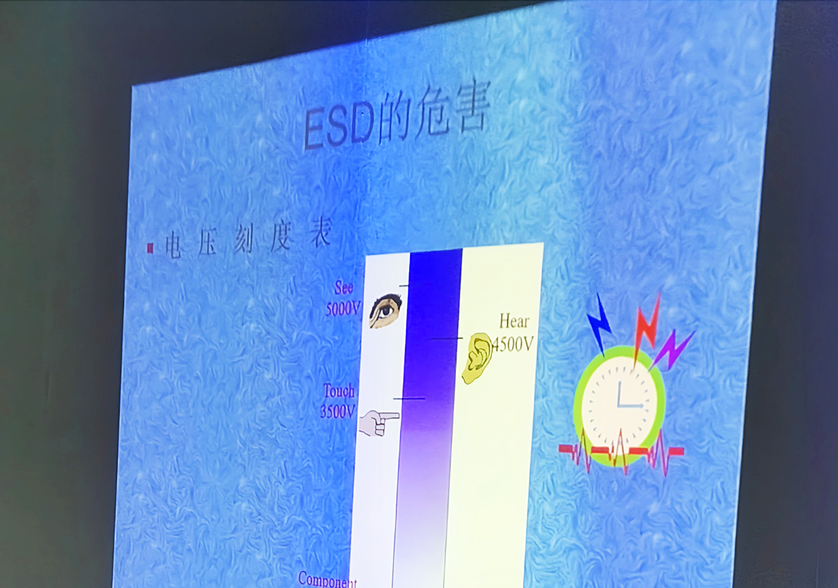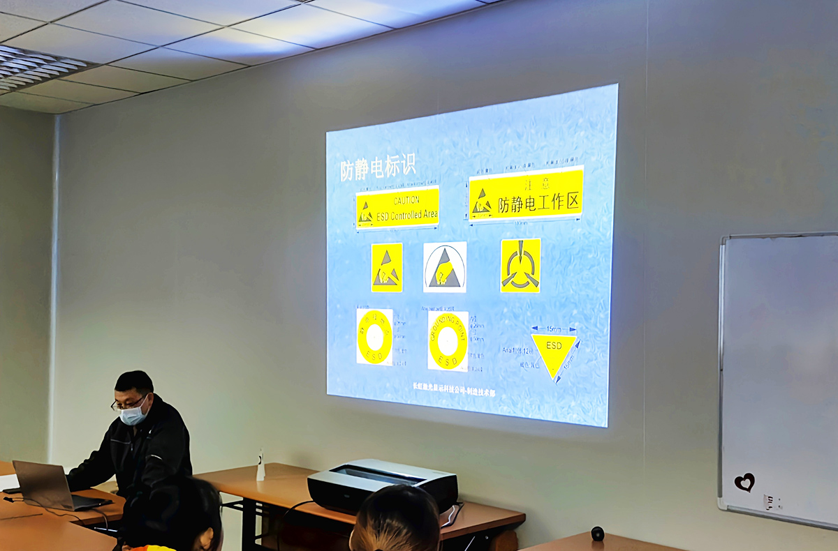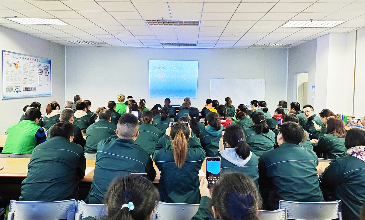 3月27日,长虹激光显示科技公司制造部全体职工在一楼职工休息室参加静电知识专题培训,了解工厂车间怎么防静电?如何做好静电防护措施?这次培训是由制造部工艺技术处陈斌老师主讲。 陈斌老师从7个方面进行了详细的讲解,职工们对什么是静电,静电产生的原因、方式、危害进行了全面了解;知道了静电防范原则主要是抑制静电的产生,加速静电的泄漏,进行静电中和等。人穿非导电鞋时,由于行走等活动会产生、积蓄电荷,并可达到千伏级的电位。在毛毯上行走、脱衣等所产生最高电位可达2450伏。此时人触及其他物体会产生火花放电并受到电击。 培训中,职工们知道了人体活动中防静电措施主要有:穿导电性鞋;工作服和内衣裤不使用化纤面料;穿混有导电性纤维或用防静电剂处理的防静电工作服;工作地面作导电化处理。对几乎不能泄漏静电的绝缘体用抗静电剂以增大电导率,使静电易于泄漏;采用喷雾、洒水等方法提高环境湿度,抑制静电的产生;使用静电消除器,进行静电中和。 工厂车间怎么防静电? 陈斌老师:首先要使用防静电材料,如防静电地板 、防静电工作台、防静电服、防静电手套、防静电托盘。其次充分接地,设备接地、手腕带接地、工具接地。最后使用离子发生器中和静电,如离子风机、离子风棒、离子风嘴、离子风刀等中和目标物体的静电。 陈斌老师重点强调: 直接接触静电敏感器件的职工均应戴防静电腕带,腕带应与人体皮肤有良好接触,腕带必须对人体无刺激、无过敏影响,腕带系统对地电阻值应在106~108Ω范围内。在电子设备研制生产过程中,一切贮存、周转SSD的容器(元器件袋、转运箱、印制板架、元器件存放盒等)应具备静电防护性能。不允许使用金属和普通塑料容器。必要时,存放部件用的周转箱应接地。消除绝缘材料表面的静电荷应使用离子风静电消除器。进入防静电工作区或接触SSD的人员应穿防静电工作服和防静电工作鞋。 陈斌老师总结到: 在工厂车间,使用以上方法是有效提高产品良率,减少静电伤害。 这次参加培训的全体职工都很珍惜学习机会,他们认真听,认真记,也确实学到了很多知识,拓展了自己的视野,职工们都叫好!