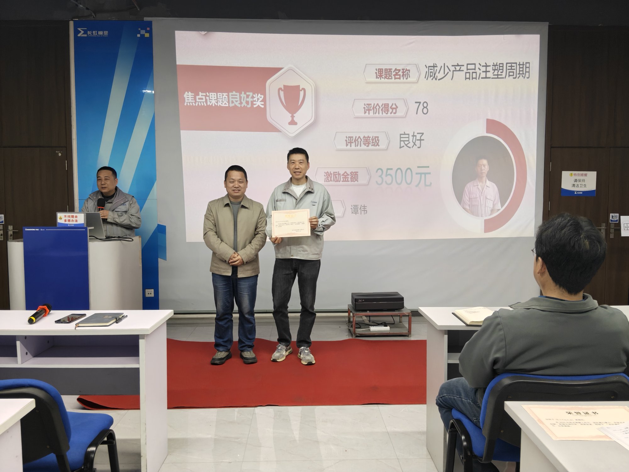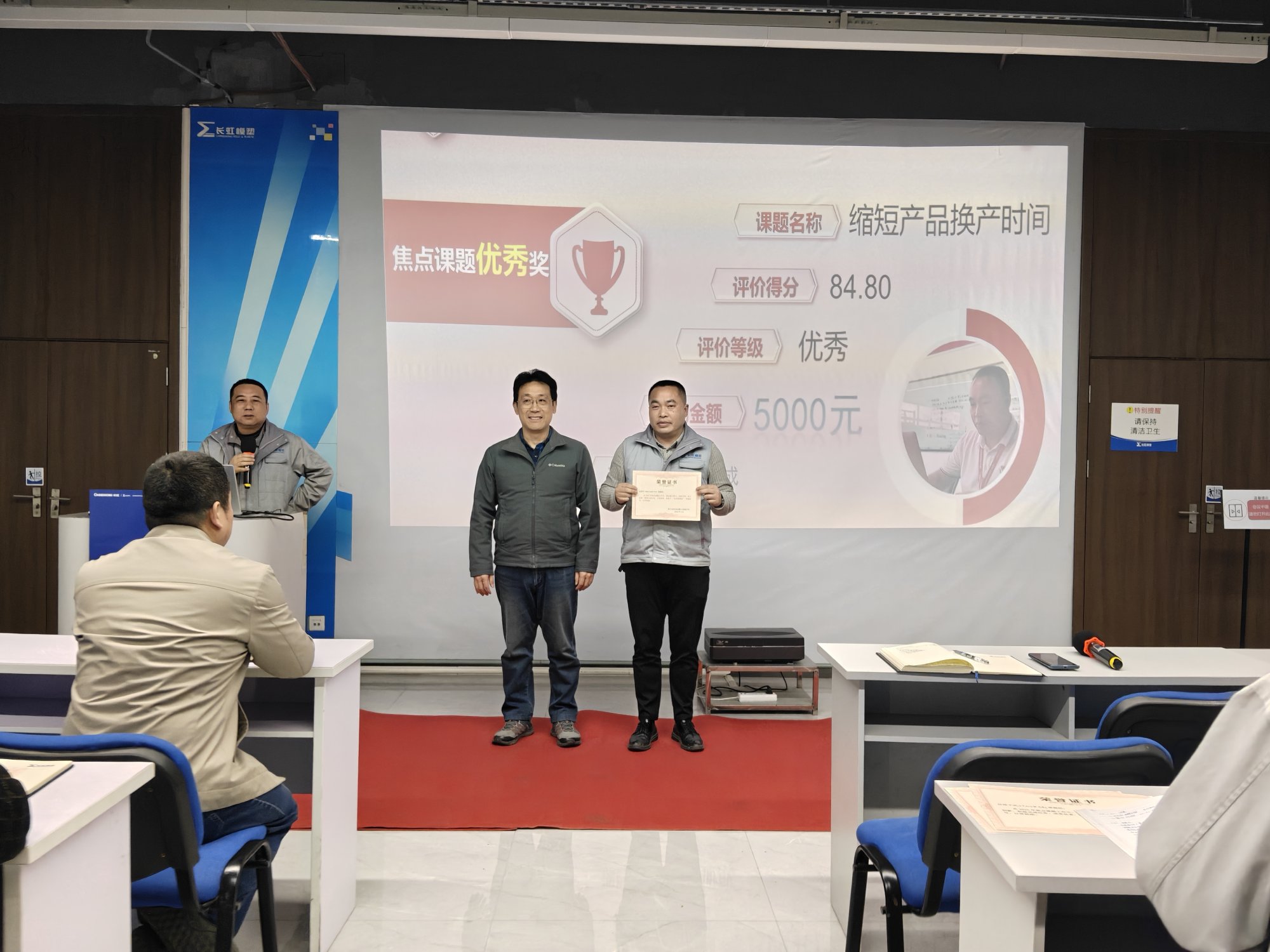 G03 G03组织焦点课题颁奖和workshop培训 3月26日下午,公司焦点课题颁奖仪式暨workshop工具培训在G03车间注塑部智显经营体会议室举行。工程部靳部长、智显经营体唐部长及各课题组成员代表参会。 会议伊始,靳卫卫部长、唐部长为注塑部智显制造经营体2025年度良好焦点课题、优秀焦点课题的获奖代表颁发荣誉证书,现场进行表扬,肯定其付出与成果。 获奖代表随后上台,分享课题研究经验、难点及解决思路,总结得失、分享借鉴。 唐部长对获奖课题点评,肯定各课题组在降本增效、质量提升上的成效,同时对后续课题研究提出要求,要求每个人要有主管思维、系统思维、精益思维和经营思维,鼓励全员深耕细研、破解生产难题,并传达领导指示:要求全体人员巩固既有课题研究经验,深刻反思推进过程中的成败教训,系统整理逻辑思路并做到举一反三,工作夯实还要回头看;要对标行业新高度,深挖工作深水区潜力,高度重视成果转化工作,不满足于现有成绩,以高标准、严要求推进各项工作,切实做到横向对标先进、纵向深入攻坚。 据悉,2025年注塑部智显经营体注塑领域推进6个焦点课题,4个顺利通过验收,通过率66.66%。具体评审:减少产品油污(79.60分,良好)、减少产品毛刺(79.20分,良好)、减少产品注塑周期(78.00分,良好)、缩短产品换产时间(84.80分,优秀)。 颁奖结束后,靳卫卫部长结合智显经营体正在推进的2026年焦点课题工作,进行了一场workshop方法导入专题培训。 他详细阐述工作就流程,以及会议方式、讨论分组、角色分工、流程策划和会议输出等内容,还结合案例讲解用法与技巧,如何在会议中充分发散,如何有效收敛等问题,进行现场解疑,助力全员熟练掌握工具、夯实推进基础。 此次会议以颁奖促激励、以培训强能力。下一步,智显经营体将深化焦点课题研究,运用workshop工具破解经营难点,推动各项工作提质升级。