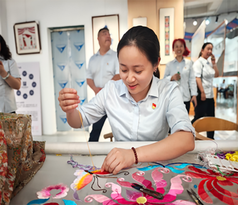 午后,队伍来到了焕然一新的北川新县城。漫步在整洁宽阔的街道上,参观象征希望与重生的“新生广场”和记录抗震救灾及重建奇迹的“幸福馆”,再到充满羌族风情的商业街“巴拿恰”,体验非遗文化、最后一站到绵阳唯一女性党的二十大代表羌绣传承人陈云珍创办的云珍羌绣馆学习交流,职工们无不为之震撼和感动。曾经的地震废墟,如今已变为安居乐业的美丽家园,这一伟大成就充分彰显了中国共产党的坚强领导和中国特色社会主义制度的优越性。在此过程中,大家放松了心情,舒缓了压力,也在对比今昔中更加珍惜当下的幸福生活,凝聚起团结奋进的力量。
