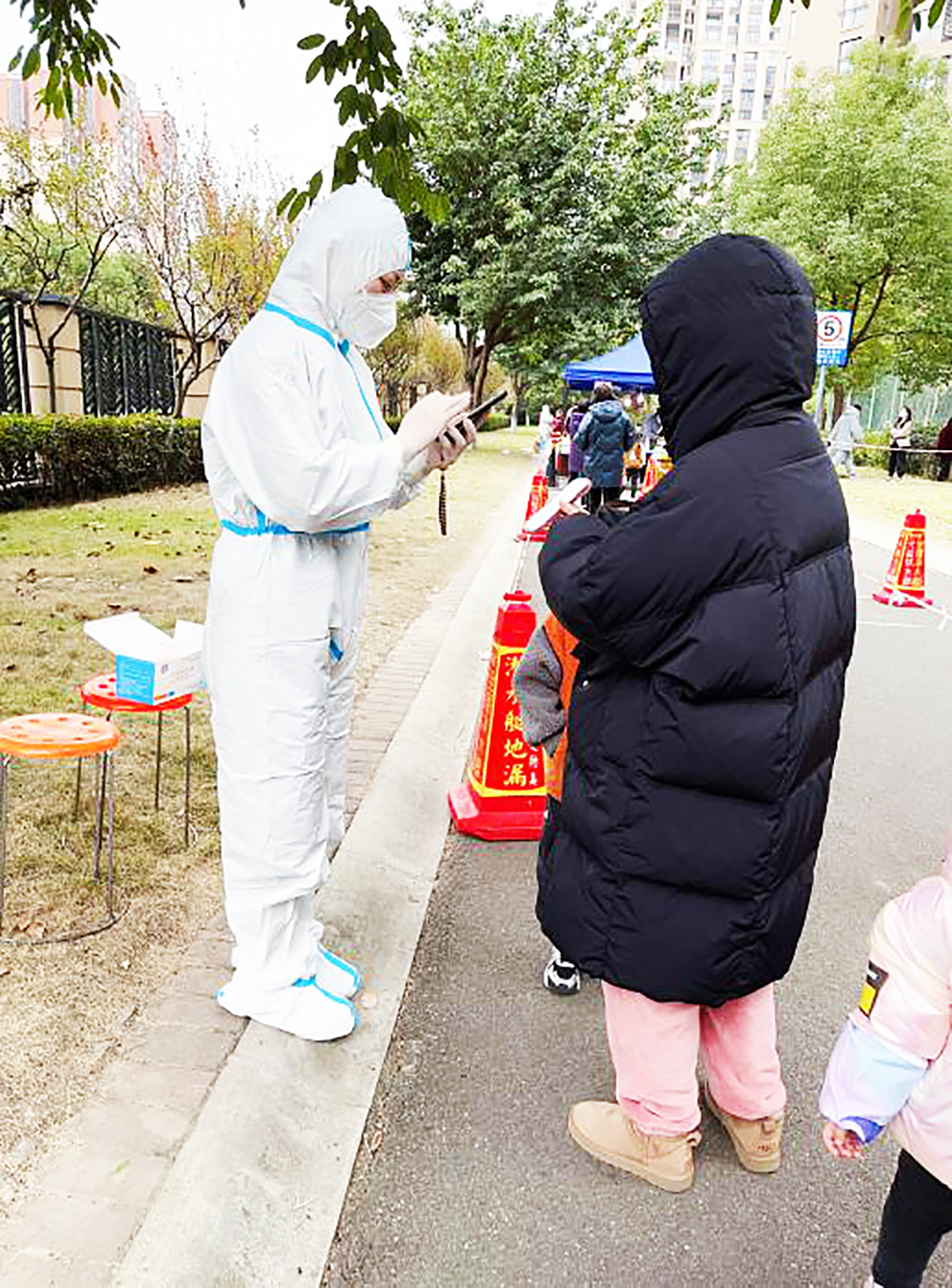 正是寒风肆虐时,防护服的橡胶手套在只有几度的温度下显得尤其寒冷,粗粗一摸仿若冰块。但任梓渝毫无怨言:“作为一名党员,吃苦在前享受在后是应该的,艰难时刻更是要展现出共产党人的志气!”她尽力将每一项任务做到最好,比如当核酸检测扫码员时,她早早到点位做准备,提前清点分发物资、设置检测台、划分隔离带,确保医护人员到位就能立即开展核酸检测工作。核酸检测过程中,她边扫码边维护现场秩序,提醒居民保持“一米线”、提前打开健康码;遇到行动不便的老人、孕妇、残疾人,她会协调让他们先采先做。