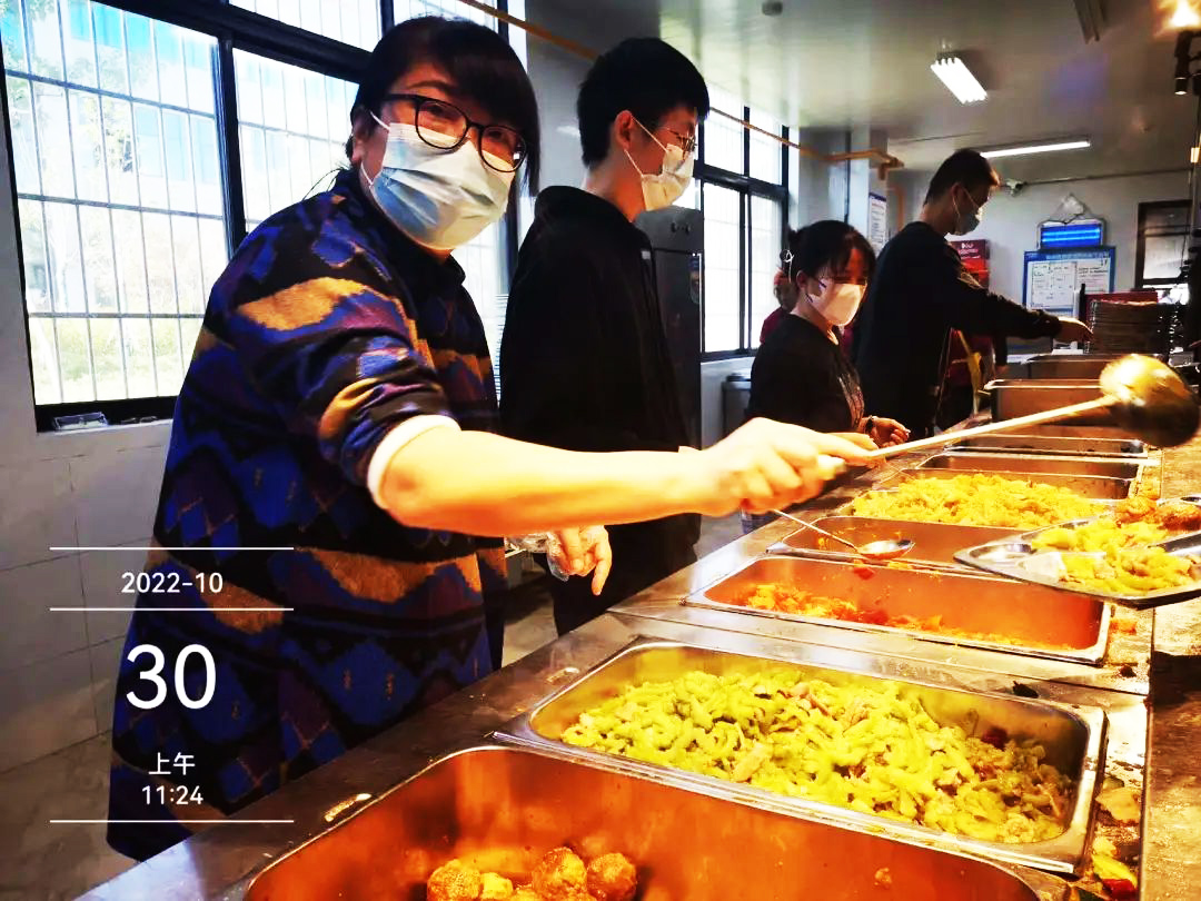 为此,佳虹公司双创园区餐饮部负责人何波带领餐饮团队开足马力,制定食谱荤素的合理搭配,保证职工每日营养摄取,为职工烹制各种营养美味可口的菜品。运管部张英牵头各单位工会,积极组织职工到食堂义务帮厨,安保人员也自发去食堂协助食材的清理等工作,用行动诠释着园区大家庭的精神——“爱创是我家、疫情自救靠大家”。