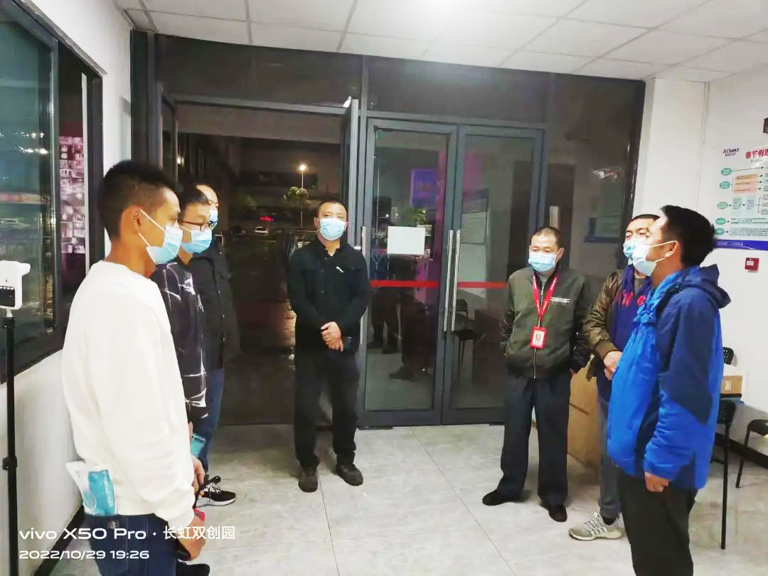每天早上8:15,企业BG负责人杨秀彪主持召开园区防疫静态闭环生产领导小组管理例会,讨论并指导园区各单位每一天的防疫工作重点和关键点;