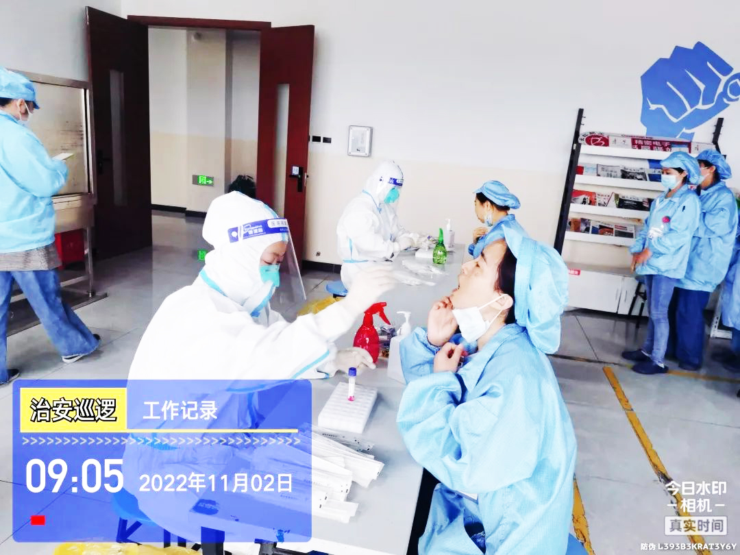 核酸检测是每日后勤保障的第一道关口,为最大限度满足生产效率,减少核酸排队检测时间。爱创公司运营管理部宋舟副部长积极组织各单位讨论最佳方案:以爱熙/模塑、爱宝/技佳为第一检测点;爱铂/精密、爱特/器件为第二检测点,采取流动式上门服务就近检测的原则,大大提高核酸检测效率,仅用3小时完成园区1700人/次以上的核酸检测,检测率达到100%。