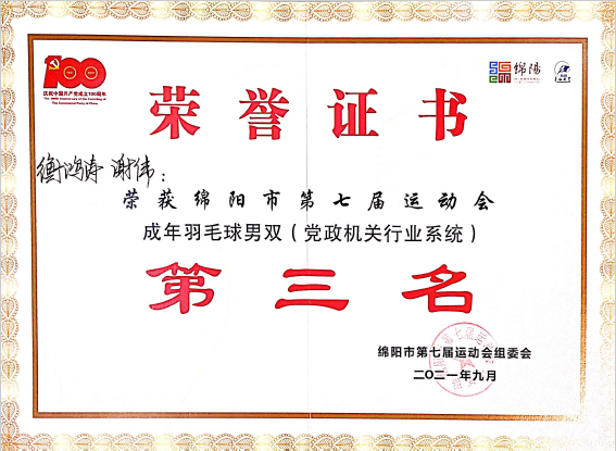9月中旬,江油全民健身中心羽毛球馆内,场上运动员们挥拍酣战,场下啦啦队呐喊助威,这是绵阳市第七届运动会羽毛球比赛正在进行。本次羽毛球比赛设有混合团体、男子单打、男子双打、女子单打、女子双打、混合双打六项比赛,来自绵阳市各区县、各行业的23支代表队共400多名运动员参加角逐,是绵阳市最高水平的业余羽毛球比赛。