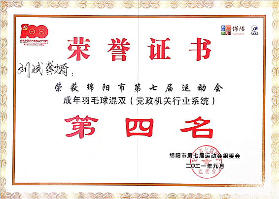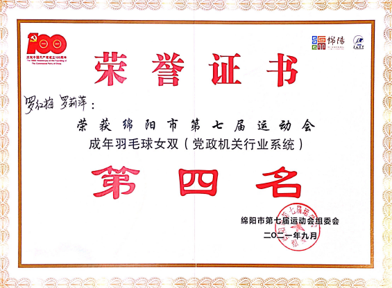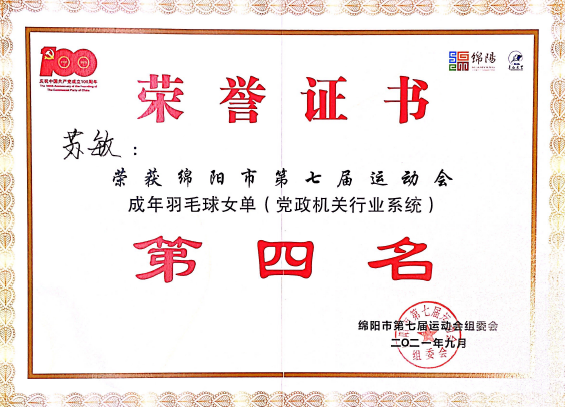 经过为期六天的鏖战,市属国企羽毛球代表队在行业组混合团体比赛中夺得第四名,同时在行业组单项比赛中收货颇丰:衡鸿涛/谢伟组合获男双季军、苏敏获女单第四名、刘斌/龚艾琦组合获混双第四名、罗莉萍/罗红梅组合获女双第四名、达成获男单第五名、宋永清/王楠组合获女双第五名。各项成绩对应积分使得市属国企羽毛球队积分排名第三。
