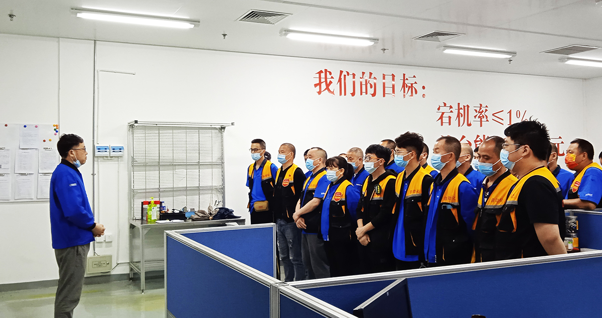 产品升级和技术的更新,需要他们与时俱进,与此同时,他们将自身的人员技术、装备设施主动升级,快速反应,逆流直上,竭尽全力为生产班组服好务。在意识到这个趋势后,唐科长专门组织了工作中成绩出色、实践中技术过硬的8名技师扩充到白班、夜班各个维修小组,主动为生产线排忧解难,及时组织各小组人员进行学习,同时开展以实战为背景的针对性培训。随时以自身的努力和不断进取的精神真正地做好 “保驾护航”工作。