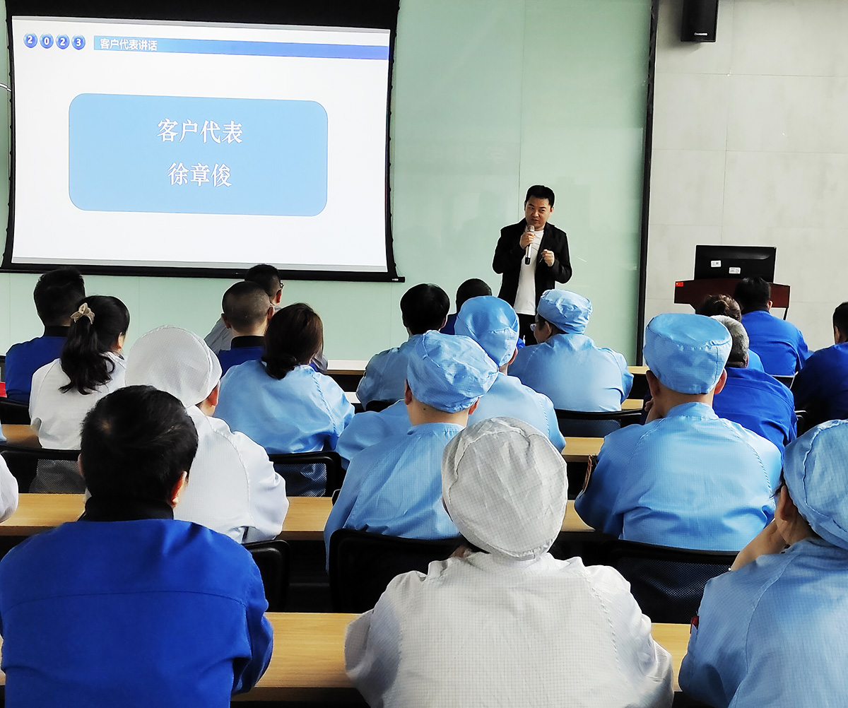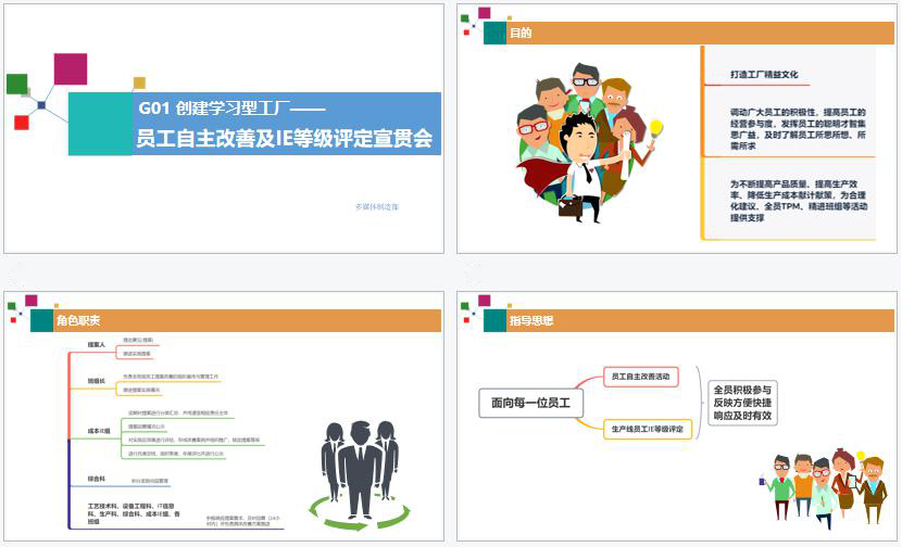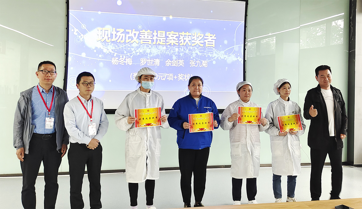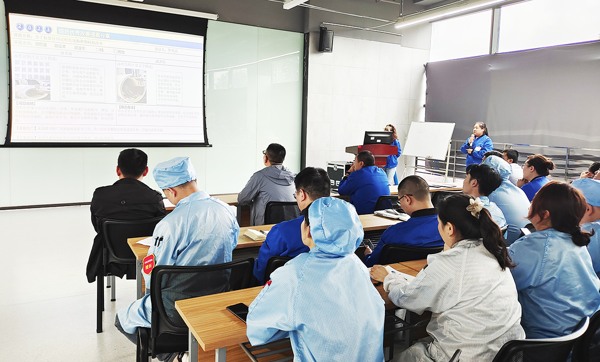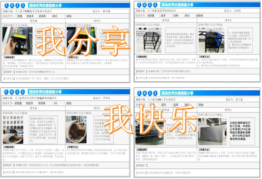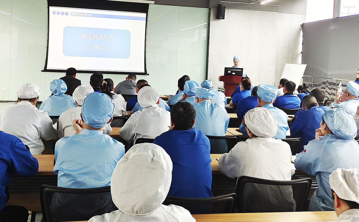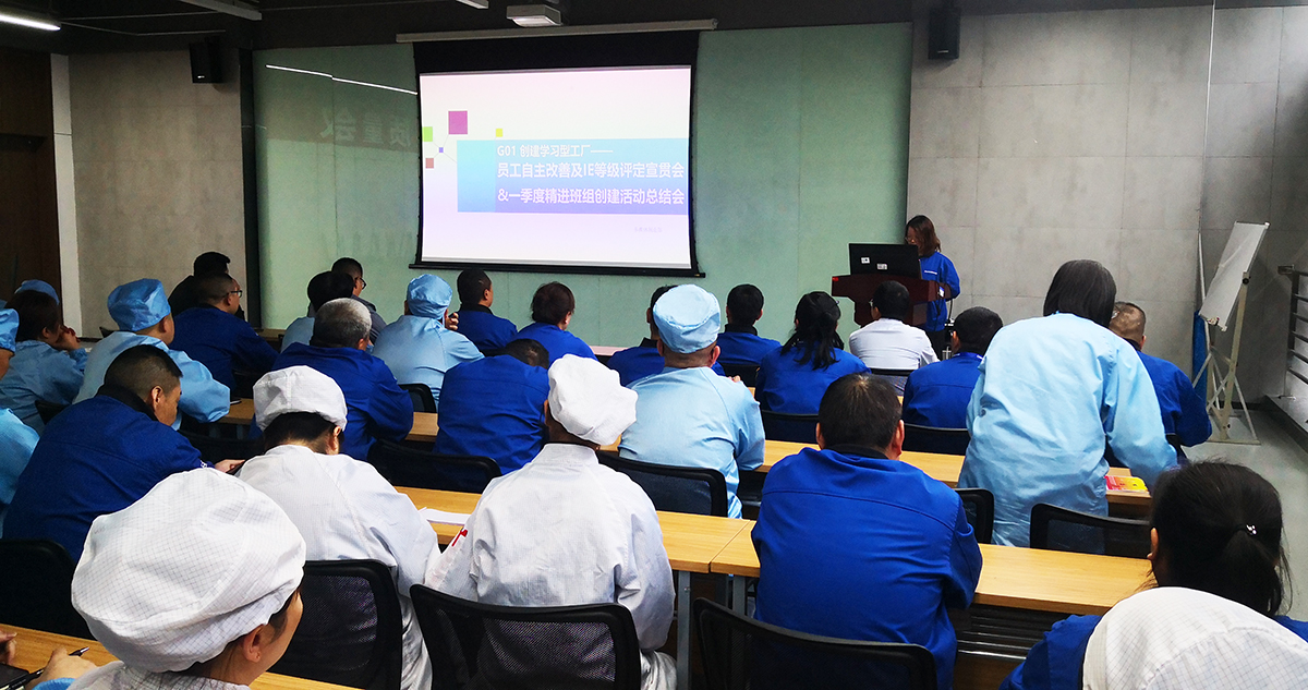 搭建职工自主改善台 做职工智慧的收集器 为充分调动广大职工的积极性、提高职工对经营的参与度,及时了解职工所思、所想、所需、所求,发挥职工的聪明才智并集思广益,促进产品质量和生产效率的提升,营造全员精益、比学赶帮的生产氛围,多媒体公司制造部启动“职工自主改善及IE等级评定”活动。 在2023年5月8日举行的《职工自主改善启动会》和《一季度精进班组总结会》中获悉,多媒体制造部的职工自主改善提案是通过在生产过程中发现问题、提出问题、解决问题,职工可获得相应的积分及IE等级,并兑换心仪的积分激励,生产效率及产品质量也可得到相应的提升、相辅相成、良性循环。 创新精进班组评选机制 激活生产一线班组动力 2023年多媒体制造部的“精进班组”创建活动主要从“提效率、稳质量、保交付、基础管理能力提升”四个维度进行,旨在创造一支“特别能吃苦、特别能战斗、特别讲团结、特别讲奉献”的“精进”团队。 在一季度“精进班组”开展工作中以效率、质量、基础管理为主要抓手。比如成立效率攻坚队,基于效率痛点实施改善;对典型质量问题分享,推进质量问题的闭环管理;按天督促日订单达成,实施D-1检查和d+1复盘制度;制定ESD审核计划,提升班组ESD管理能力;组织寻找“最牛的你”技能比武大赛,提升职工的技能等。 经过Q1激烈的竞争,通过“提效率、稳质量、保交付、基础管理能力提升”多维度实施评比。最终,HC7线获得“精进班组”流动红旗;材料班、HC2线获得“优秀班组”流动红旗。与此同时,来自一线班组的杨冬梅、罗世清、余剑英、张九菊的现场优秀改善提案脱颖而出,获得了Q1优秀现场改善提案“金点子”。 我改善 我创效 我精进 在一季度精进班组创建总结会上,由一线职工讲述“金点子”的改善历程,由“精进班组”代表刘勇班长现场分享生产班组的管理心得,邀请客户代表为与会者赋能“如何抓住职工的心”,优秀的发言者们是畅快淋漓、语重心长。最后,多媒体制造部部长李云对当前重中之重的效率提升工作做出了要求:“在现场改善中需要勇于接受改善建议,更需要将被动接受变成主动改善。而这,也正是在制造业推行精益改善永恒的方法与路径”。