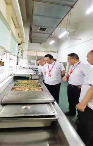 经开区工业园食堂、公寓慰问现场,雍总一行为奋战在一线的食堂师傅和保安送上慰问品,感谢食堂师傅们克服操作间高温,为员工们带来可口饭菜;保安们烈日下站岗执勤,为各工业园区和公寓保平安。在平凡的岗位,默默无闻为长虹公司的后勤保障做出了无私奉献。雍总叮嘱大家在做好工作的同时,也要爱护自己的身体,劳逸结合,防止高温中暑。同时雍总还要求各部门要尽量改善劳动条件,合理安排工作时间,做好防暑降温措施,切实保障一线员工有一个良好的工作环境。一线员工们纷纷表示,对公司领导的慰问关怀表示感谢,一定不辜负期望,尽心尽力做好本职工作,为公司的发展壮大贡献自己的力量。慰问活动结束,雍总一行深入现场,对食堂、公寓的消防、燃气、食品安全、疫情防控等方面进行了安全检查。在安全检查中,雍总强调,夏季安全工作不容忽视,极端高温天气下,人员心理情绪浮躁,人为风险因素明显增大,大家必须高度重视。7月6日绵阳步行街发生疑似电瓶车充电发生的火灾事故,给我们敲响了警钟,在日常管理巡查中,要坚决制止电瓶车停放楼道和充电,防止类似事故的发生。