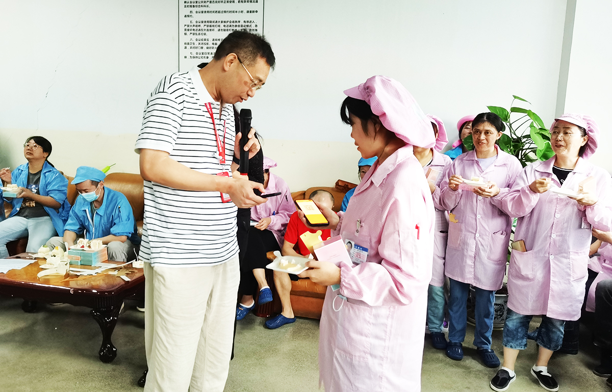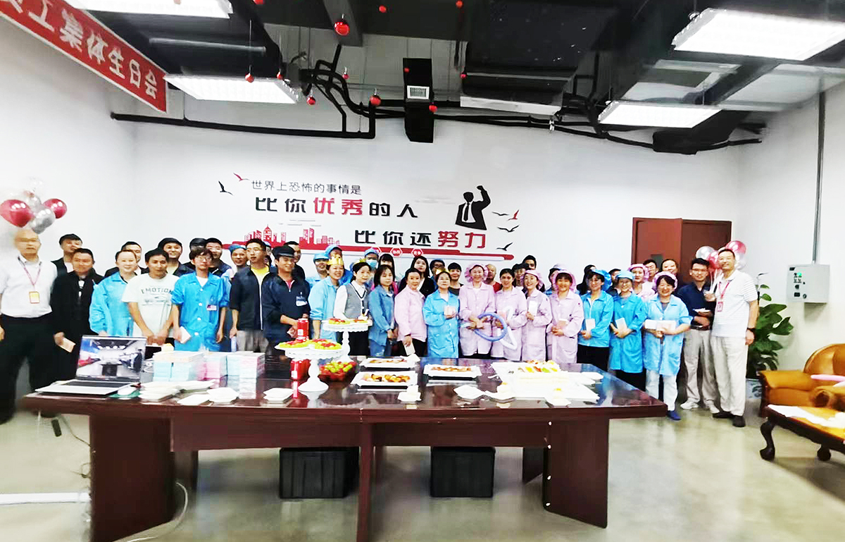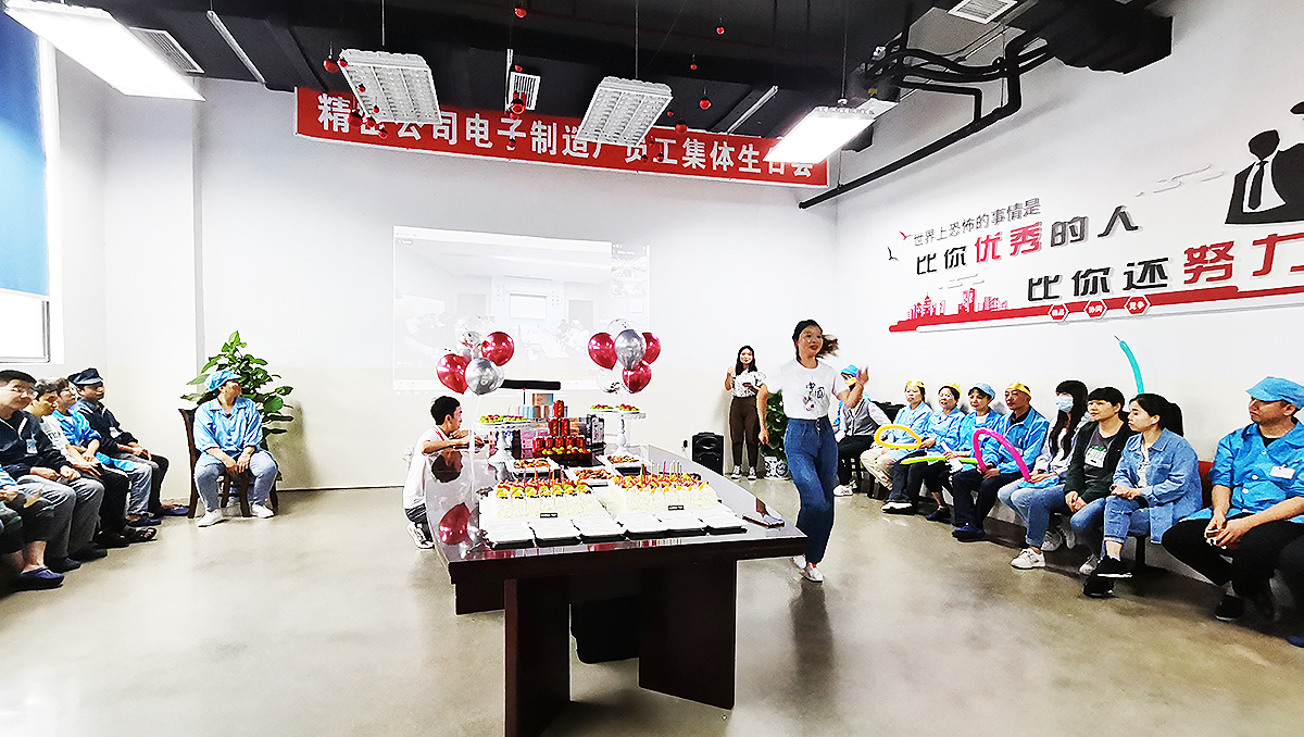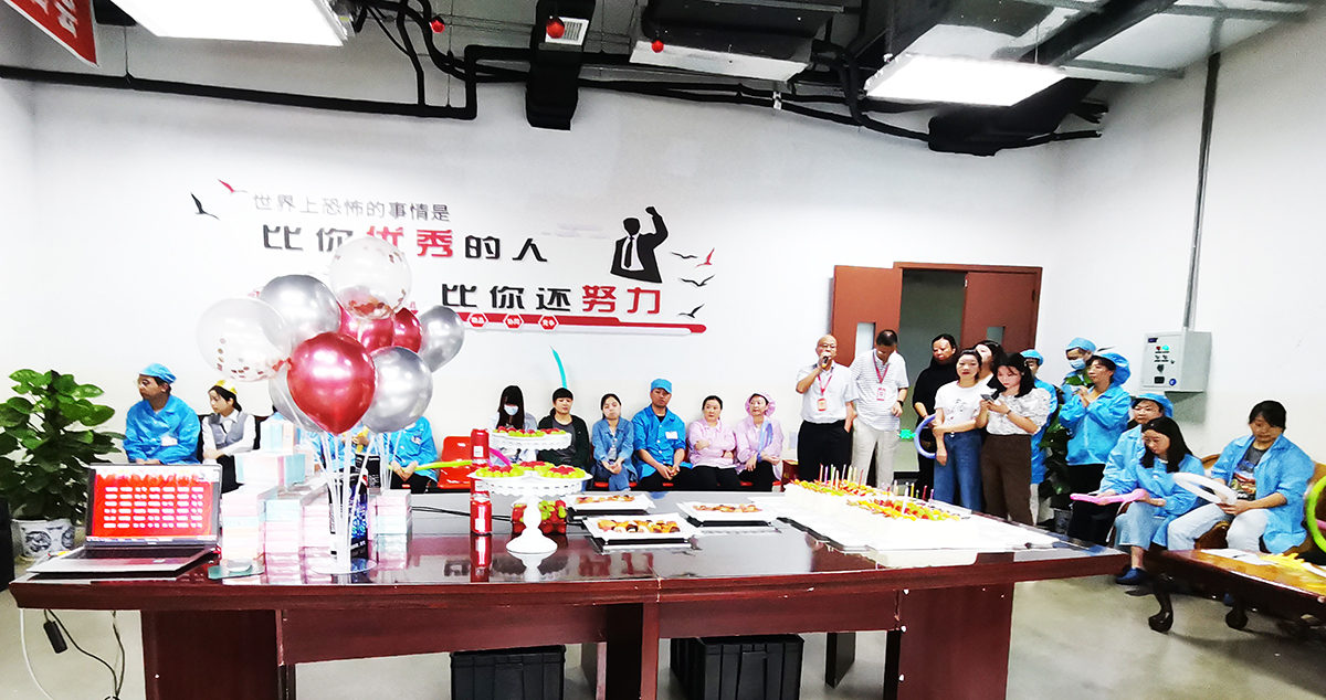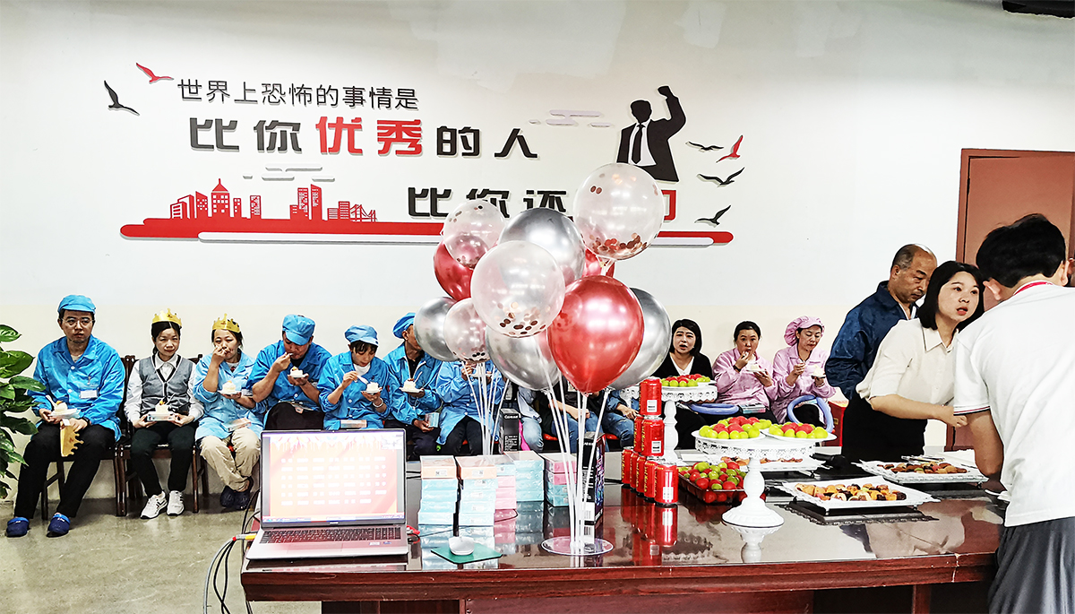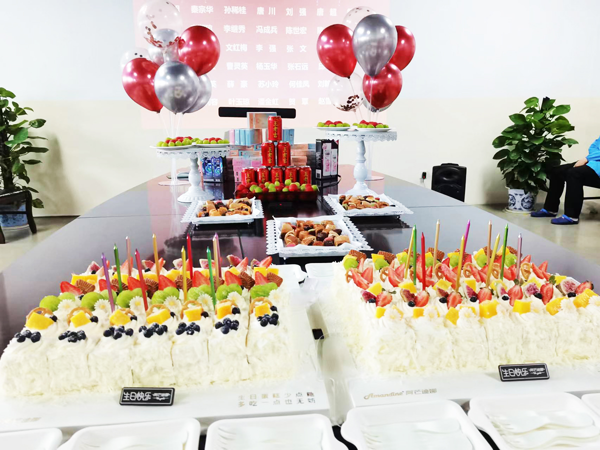 精致的生日礼物,香甜的蛋糕, 真诚的祝福,温暖的笑脸, 亲切的生日歌,130位寿星们欢声笑语, 齐聚一堂,共同庆生。 李斌厂长、分工会主席蔡捷、及各科室、班组负责人等亲临会场为生日的职工送上温馨的祝福和问候,祝寿星们生日快乐、中秋、国庆佳节快乐,万事胜意,身体健康、心想事成!感谢他们为公司生产经营做出的贡献。 工会文娱委员赵春凤载歌载舞,为寿星们送去喜庆和吉祥快乐。 蔡主席还为当天过生日和中秋过生日的职工发放了特别的礼物祝福大家生日快乐,中秋合家欢乐,团团圆圆,幸幸福福! 生日会简短而热烈,寿星们在大家的祝福声中品尝着香甜的蛋糕。 此举,不仅让职工们在紧张繁忙的工作之余,享受活跃又温暖的轻松时刻,同时,也让寿星们感受到了领导的关怀,和集体的温暖,进一步增强了职工的集体荣誉感、归属感和责任心,增强了公司凝聚力。 未来,大家将勠力同心、继续同行,共同打造一个有爱有情的团队,为精密公司的各项生产经营而努力奋斗。 再次祝福所有第三季度生日的小伙伴们生日快乐,感谢您们为公司的付出!