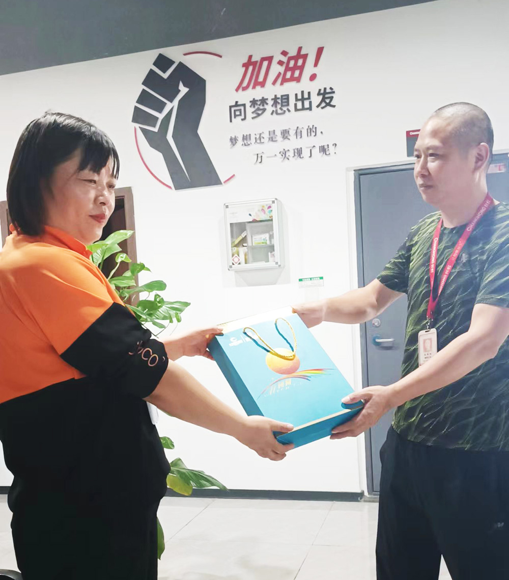 丹桂飘香时,月圆中秋到。为传承和弘扬中华民族传统美德,传播社会正能量,让每一个职工都能够感受到公司的关心关爱,确保职工过上一个欢乐祥和的节日,9月5日,精密公司举行了向全体职工发放中秋节慰问活动,给职工发放了精心准备的“中秋月饼”,并向广大职工不畏艰难,共克时艰,战高温及抗疫保产表示真诚的感谢和崇高的敬意。 把公司的关心、关爱送到每个职工身边,确保每个职工过一个祥和、温馨和幸福的中秋佳节。为职工们送去了公司的温暖,并向他们致以节日的祝福和问候。本次中秋慰问,不仅增强了企业的凝聚力和向心力,还提高了职工满意度。