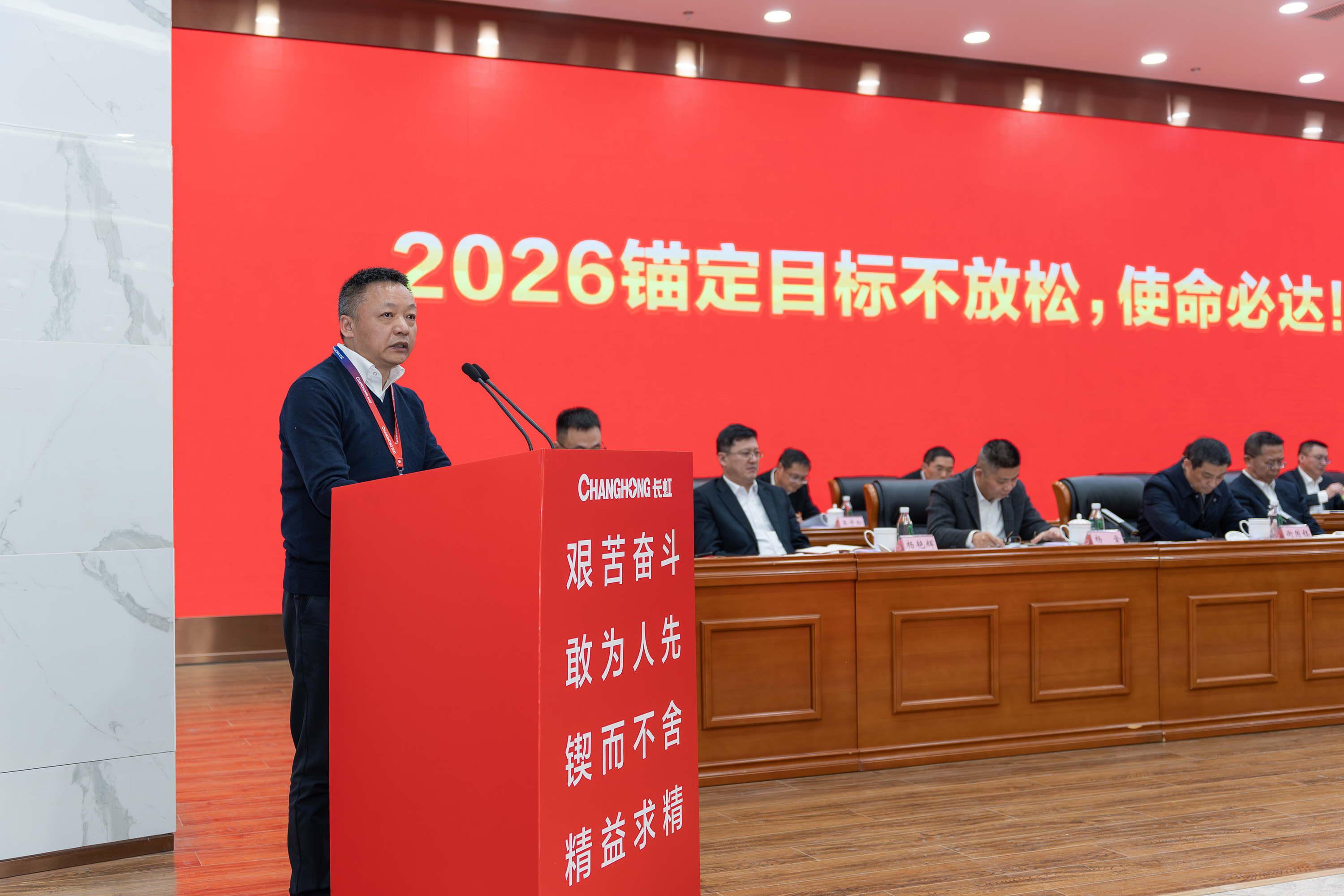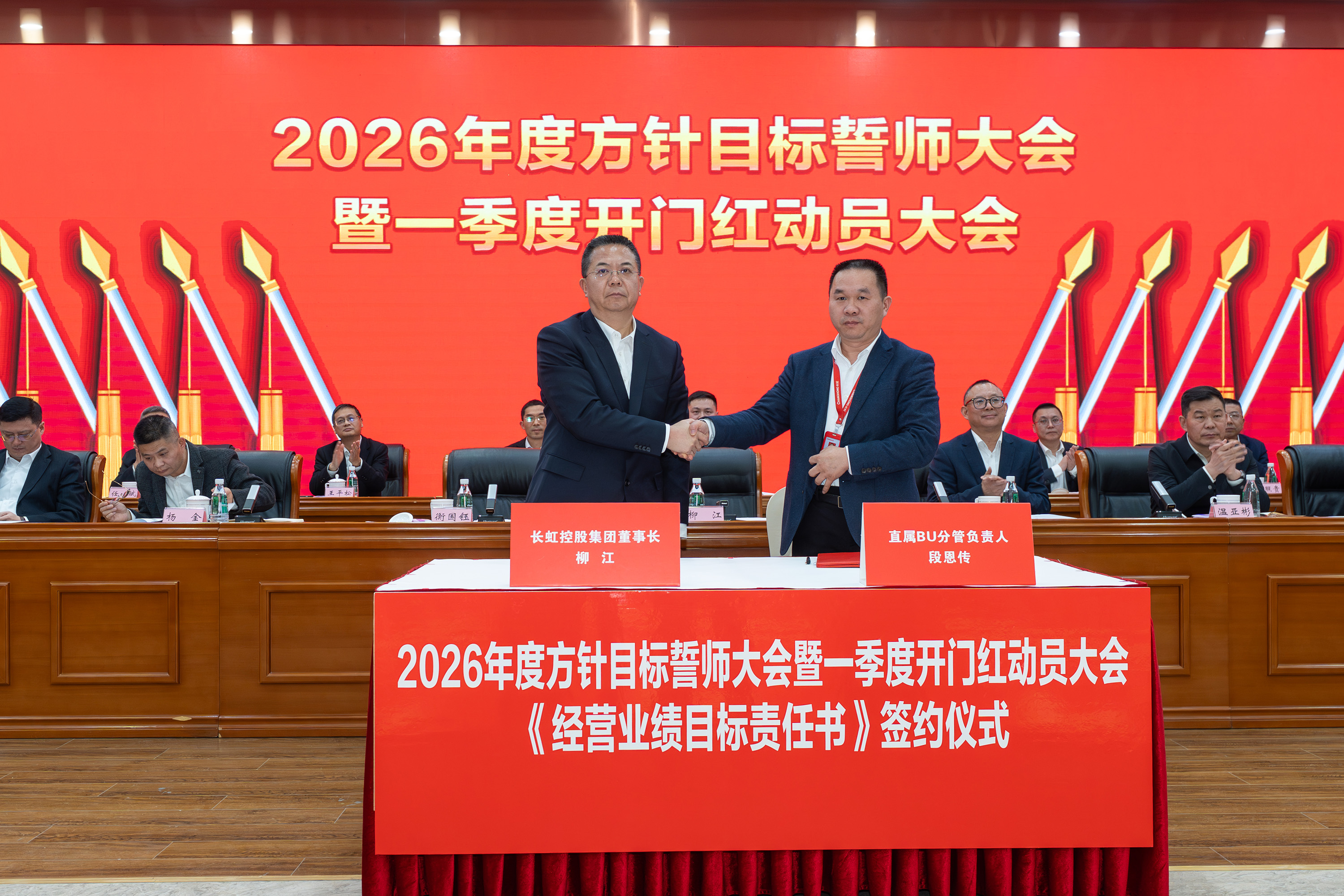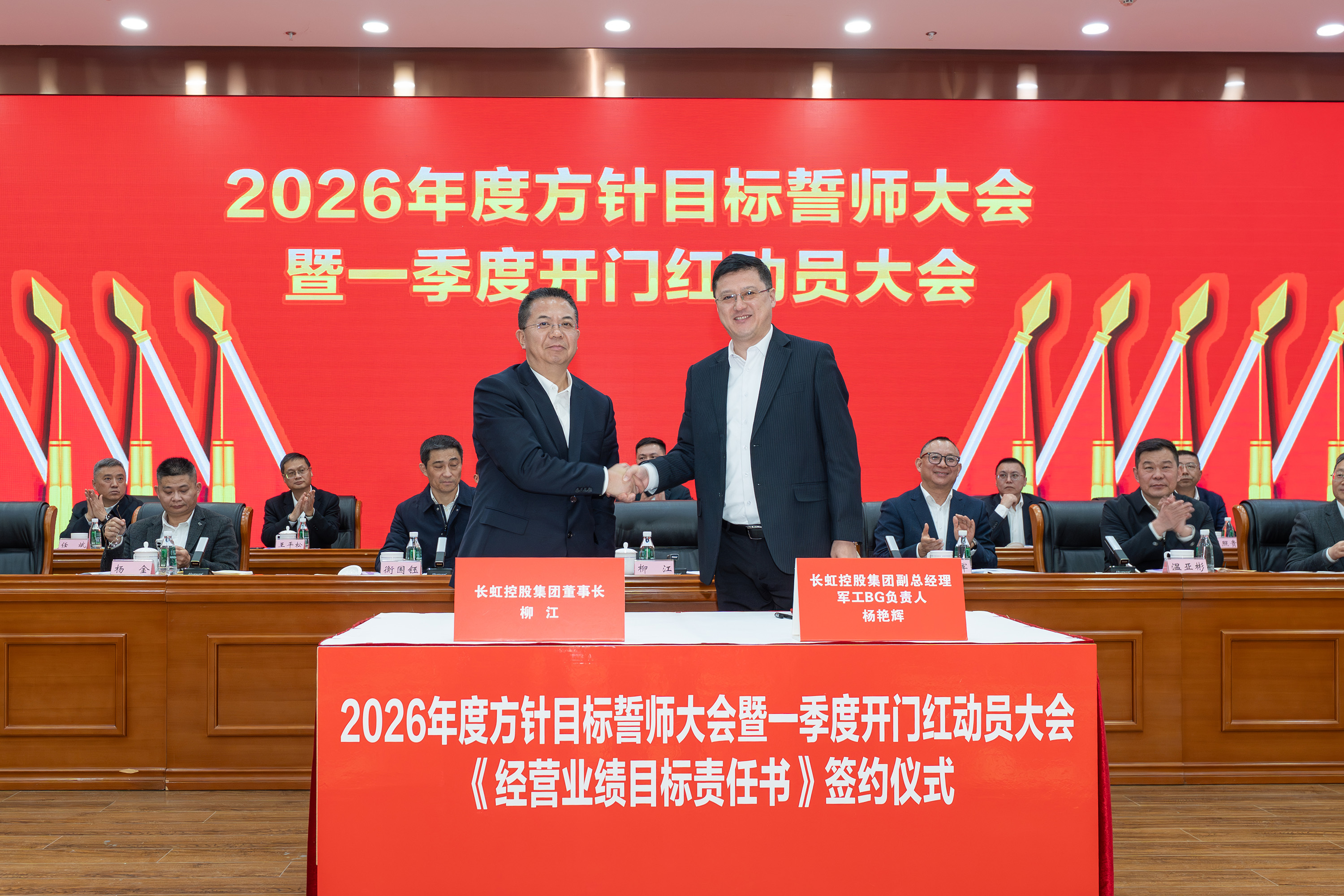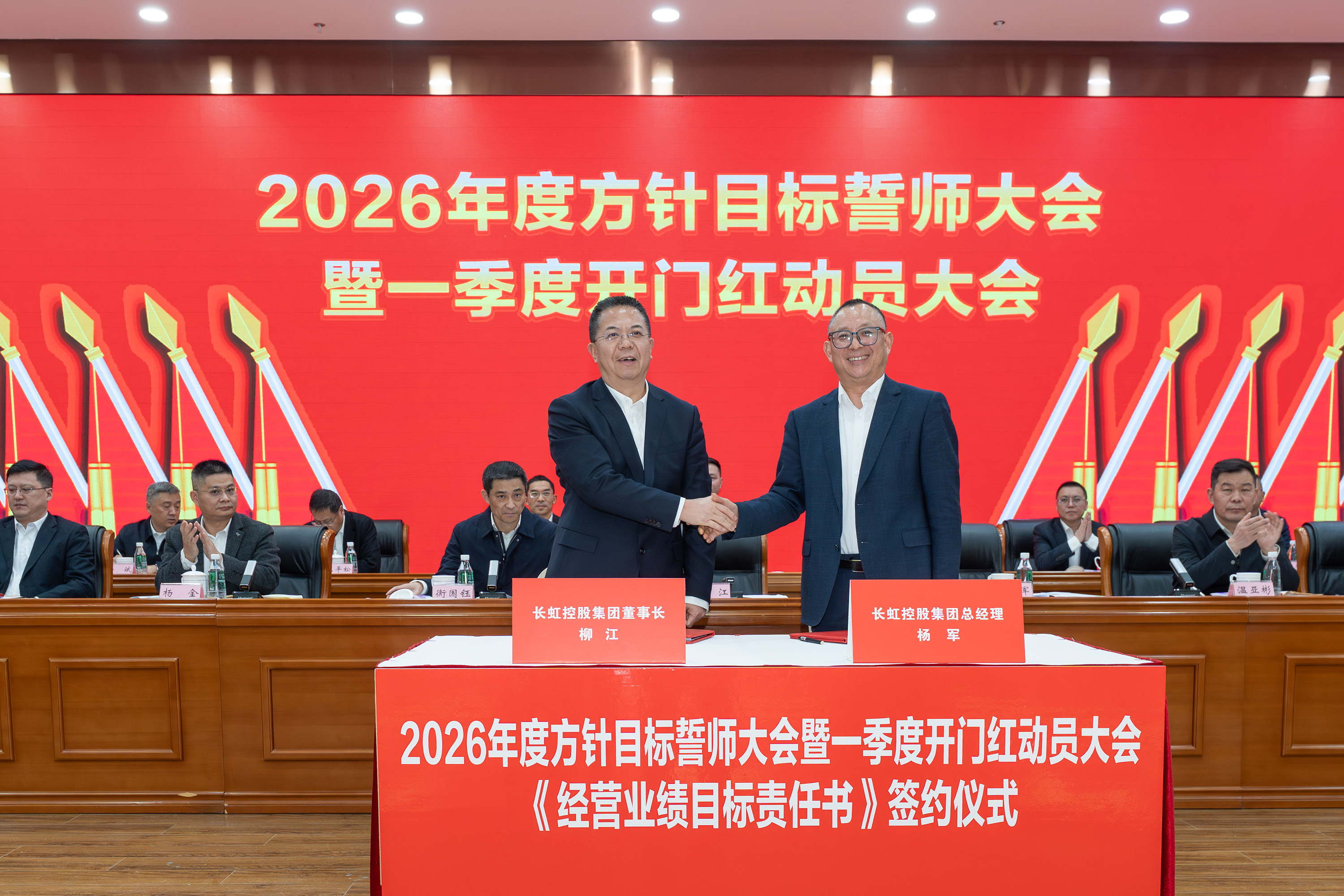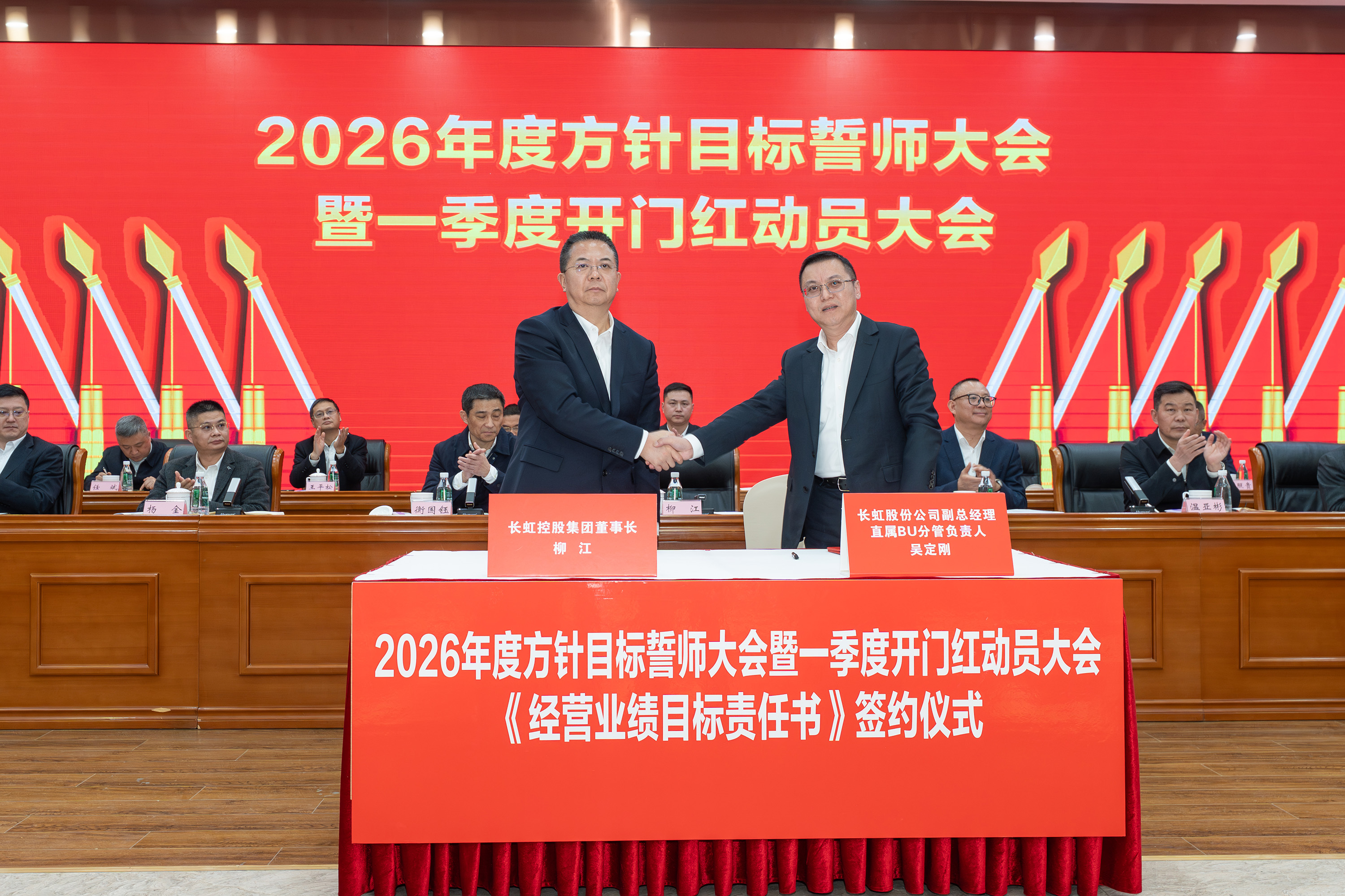 2月5日,长虹控股集团2026年度方针目标誓师大会暨一季度开门红动员大会、2025年度技术创新大会、长虹控股集团二届五次/股份公司五届五次职工代表大会在长虹技术中心三楼会议室举行。集团党委书记、董事长柳江出席会议并讲话。 大会现场 会议指出,2025年是“十四五”规划收官之年,在全球局势复杂多变、行业竞争持续加剧的外部环境下,全体长虹人秉持着“艰苦奋斗、敢为人先、锲而不舍、精益求精”的精神,以昂扬的斗志、务实的作风,统筹推进产业布局、技术创新、智改数转、企业治理等重点工作,迎难而上、稳中有进,在经营规模、产业布局、科技创新等关键领域实现质效双升,交出了一份彰显责任与担当的高质量发展答卷。这份成绩的背后,是6万名长虹人凝心聚力、拼搏奉献的生动实践。 集团党委书记、董事长柳江在会上作重要讲话 会议强调,2026年既是“十五五”开局之年,也是长虹加快建设世界一流企业的夯基之年,当下,发展环境虽然更加困难、发展任务更加艰巨,但我们仍要看到市场中蕴藏着的巨大机遇。要抓住新一轮科技革命和产业变革加速突破的机遇,寻找新增长点,以人工智能等战略性新兴赛道推动产业升级,提升巩固行业地位。另一方面,要准确识变、科学应变、主动求变,全力拓展海外新市场、寻找海外新增量。同时,抢抓人工智能发展机遇,以AI生产力提升运营质效,锻造核心竞争力。集团上下要坚持“正风气、强担当、固根基、堵漏洞、补短板、扬优势”工作举措,朝着“加快建设世界一流企业”的目标开好头、起好步。要锚定“产品卓越”目标,培育强健的产业体系,打造用户满意的产品,增强盈利能力,持续厚植世界一流企业的产业根基;要锚定“品牌卓著”目标,不遗余力加强品牌传播,科学高效开展市场营销,尽力竭力搞好售后服务,持续彰显世界一流企业的价值优势;要锚定“创新领先”的目标,提升创新氛围,提升创新能力,提升创新时效,持续汇聚建设世界一流企业的强劲动能;要锚定“治理现代”的目标,以高质量党建引领高质量发展,提升科学化管理水平,锻造堪当重任的高素质专业化干部队伍,持续筑牢建设世界一流企业的坚强保障。 集团党委副书记、总经理杨军作2025年度公司经营工作报告,并安排部署2026年度重点经营工作 会议强调,2026年是“十五五”开局关键年,面对国际国内的形势变化和诸多的不确定性,全体长虹人要“向新而行、决胜AI时代”。秉持“稳进提质增效,协同创新赋能,品牌智造卓越”经营方针,于变局中开新局,在奋进中创辉煌。要加强战略牵引,聚焦“3+1+N”产业布局,构建有竞争力的产业体系。要强化科技引领,把创新刻进DNA里。要深化国企改革,推动企业高质量发展。要筑牢底线基础,抓好合规体系建设,盯住重点风险领域,在不确定性中守住确定性。要坚持党建引领,将独特的“虹色”基因充分转化为公司发展的动能。 会议号召,全体员工要以奋进之姿勇担使命,聚焦主责主业、狠抓能力建设,全力实现一季度“开门红”,同心笃行、聚力创新,奋力实现“十五五”良好开局。 集团党委副书记、工会主席衡国钰主持会议 会上,柳江分别与杨军,消费者BG,企业BG,JGBG,资源BG,能源环保BG,数字产业BG,直属BU等,签订了经营业绩目标责任书。 签订经营业绩目标责任书 在过去的一年,面对复杂严峻的外部环境与艰巨繁重的改革发展任务,全体长虹干部员工凝心聚力,迎难而上,推动公司经营在高质量发展的轨道上稳健前行,整体发展质效稳步提升。在此过程中,涌现出了一批勇于担当、业绩突出的经营卓越和优秀团队,展现出强大的战略执行力和攻坚克难的精神。 经营卓越单位 长虹佳华:持续推进外部新业务突破和内部精细化管理,海外和增值业务保持较大增速,低空经济和数字营销等新兴领域布局初见成果,驱动经济规模再上新台阶。 长虹华丰科技:持续深化产业布局与资源配置,紧抓行业机遇,高速通讯连接器等核心赛道的战略投入成效凸显,驱动经营业绩实现高速增长。 2025年度经营卓越单位长虹佳华控股集团副总裁何建华发言 2025年度经营卓越单位长虹华丰科技负责人刘太国发言 经营优秀单位 长虹能源:坚持稳健经营,有效应对贸易环境变化,持续推进内部精细化管理,产能稳步提升,高倍率锂电池与聚合物电池业务高速增长,整体实现稳步健康发展。 长虹国际冰洗:坚持“一企双区”品牌发力、品类协同项目凸显、关键客户拓展有力、洗衣机业务快速突破,整体业绩大幅增长。 广东长虹:克服关税地缘冲突影响,抢抓客户订单,优化产品结构,实现收入、利润双增,再创历史新高。 会上,长虹能源、长虹国际冰洗、广东长虹单位等负责人分别以“锚定目标不放松,使命必达”为主题作了先进经营管理经验分享。 2025年度经营优秀单位长虹能源负责人郭龙发言 2025年度经营优秀单位长虹国际冰洗负责人阳周发言 2025年度经营优秀单位长虹国际智显(广东长虹)副总经理蒋吉强发言 2025年,长虹人坚持创新,将技术突破融入发展基因,将创新活力转化为推动产业升级的澎湃动能,一系列技术成果为提升长虹市场竞争力奠定了坚实基础。一批技术创新成果、技术创新人物、智造先进个人、智造优秀案例、智能制造先进单位获得表彰。 技术创新成果、技术创新人物、智造先进个人、智造优秀案例、智能制造先进