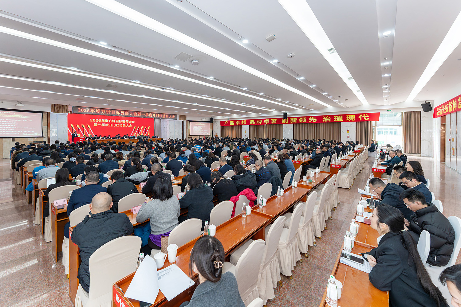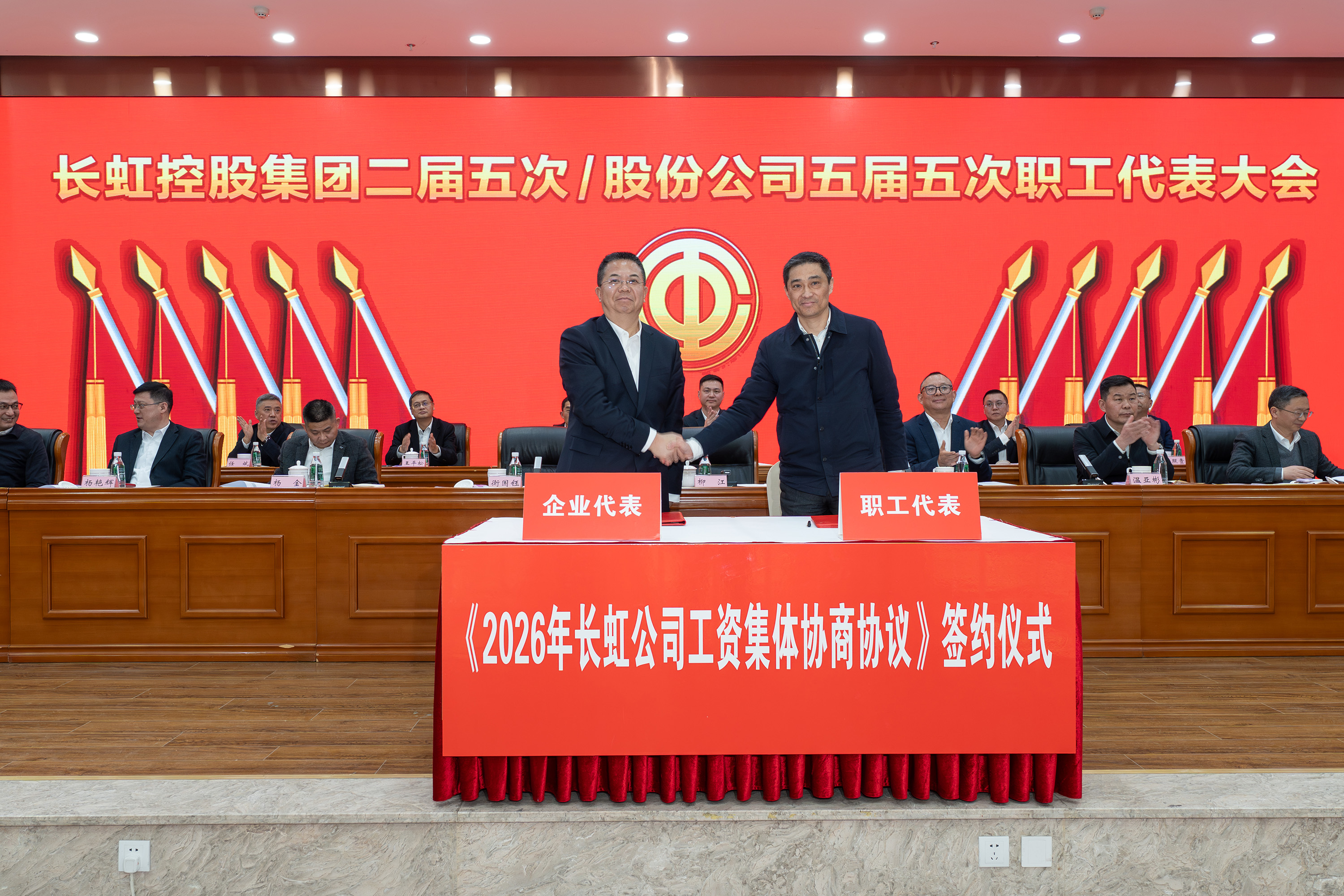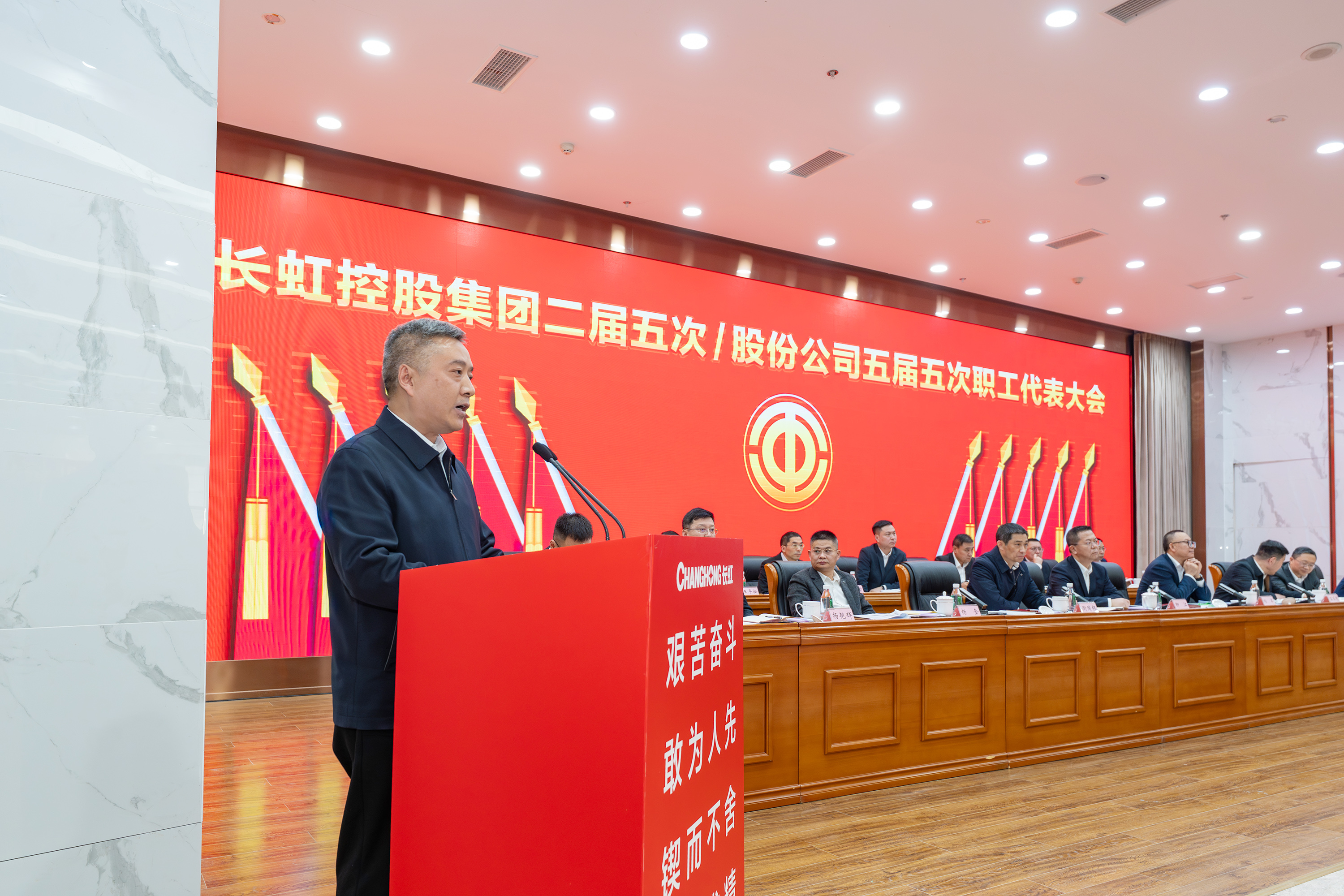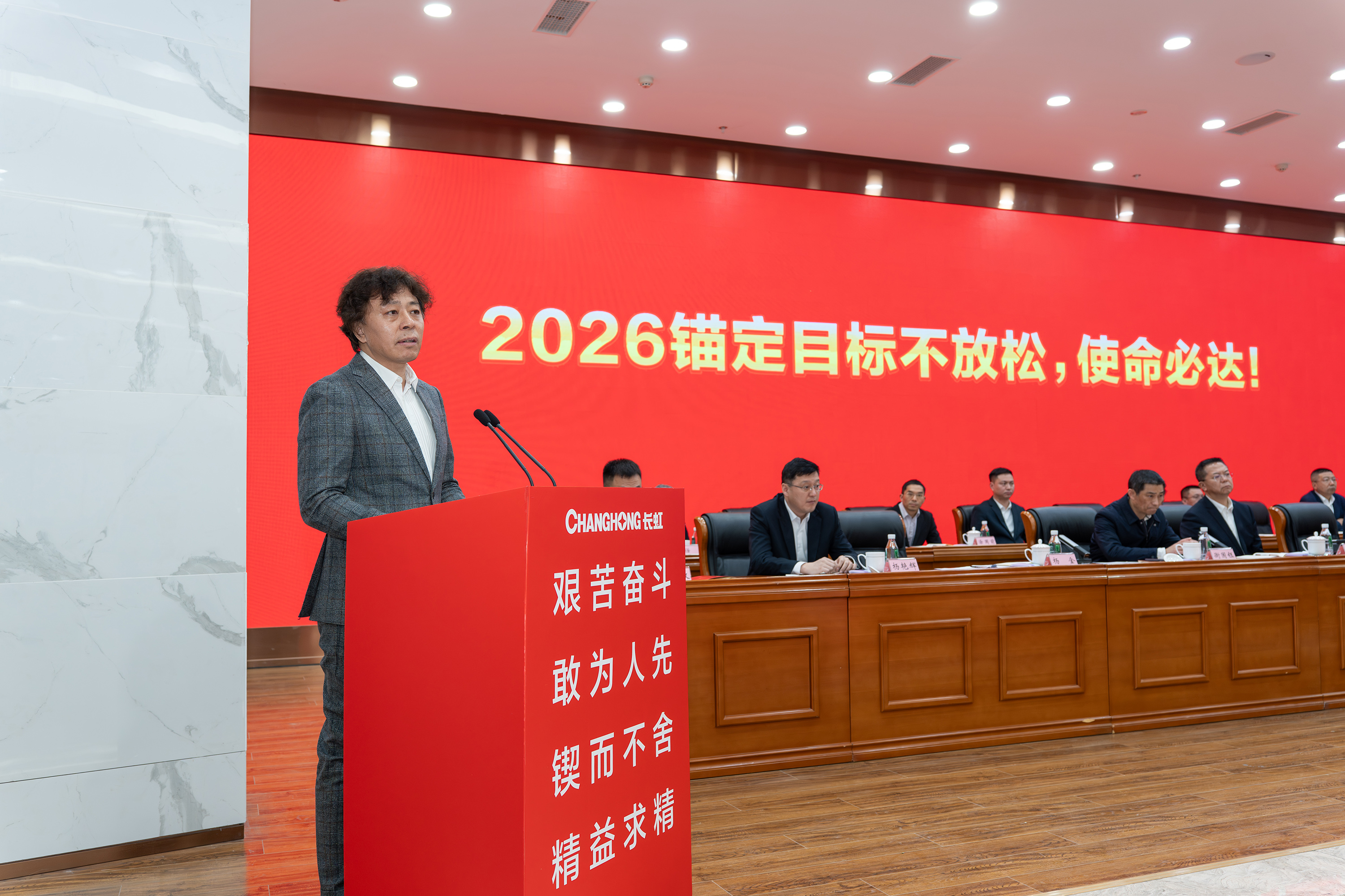 2月5日,长虹控股集团2026年度方针目标誓师大会暨一季度开门红动员大会、2025年度技术创新大会、长虹控股集团二届五次/股份公司五届五次职工代表大会在长虹技术中心三楼会议室举行。集团党委书记、董事长柳江出席会议并讲话。 大会现场 会议指出,2025年是“十四五”规划收官之年,在全球局势复杂多变、行业竞争持续加剧的外部环境下,全体长虹人秉持着“艰苦奋斗、敢为人先、锲而不舍、精益求精”的精神,以昂扬的斗志、务实的作风,统筹推进产业布局、技术创新、智改数转、企业治理等重点工作,迎难而上、稳中有进,在经营规模、产业布局、科技创新等关键领域实现质效双升,交出了一份彰显责任与担当的高质量发展答卷。这份成绩的背后,是6万名长虹人凝心聚力、拼搏奉献的生动实践。 集团党委书记、董事长柳江在会上作重要讲话 会议强调,2026年既是“十五五”开局之年,也是长虹加快建设世界一流企业的夯基之年,当下,发展环境虽然更加困难、发展任务更加艰巨,但我们仍要看到市场中蕴藏着的巨大机遇。要抓住新一轮科技革命和产业变革加速突破的机遇,寻找新增长点,以人工智能等战略性新兴赛道推动产业升级,提升巩固行业地位。另一方面,要准确识变、科学应变、主动求变,全力拓展海外新市场、寻找海外新增量。同时,抢抓人工智能发展机遇,以AI生产力提升运营质效,锻造核心竞争力。集团上下要坚持“正风气、强担当、固根基、堵漏洞、补短板、扬优势”工作举措,朝着“加快建设世界一流企业”的目标开好头、起好步。要锚定“产品卓越”目标,培育强健的产业体系,打造用户满意的产品,增强盈利能力,持续厚植世界一流企业的产业根基;要锚定“品牌卓著”目标,不遗余力加强品牌传播,科学高效开展市场营销,尽力竭力搞好售后服务,持续彰显世界一流企业的价值优势;要锚定“创新领先”的目标,提升创新氛围,提升创新能力,提升创新时效,持续汇聚建设世界一流企业的强劲动能;要锚定“治理现代”的目标,以高质量党建引领高质量发展,提升科学化管理水平,锻造堪当重任的高素质专业化干部队伍,持续筑牢建设世界一流企业的坚强保障。 集团党委副书记、总经理杨军作2025年度公司经营工作报告,并安排部署2026年度重点经营工作 会议强调,2026年是“十五五”开局关键年,面对国际国内的形势变化和诸多的不确定性,全体长虹人要“向新而行、决胜AI时代”。秉持“稳进提质增效,协同创新赋能,品牌智造卓越”经营方针,于变局中开新局,在奋进中创辉煌。要加强战略牵引,聚焦“3+1+N”产业布局,构建有竞争力的产业体系。要强化科技引领,把创新刻进DNA里。要深化国企改革,推动企业高质量发展。要筑牢底线基础,抓好合规体系建设,盯住重点风险领域,在不确定性中守住确定性。要坚持党建引领,将独特的“虹色”基因充分转化为公司发展的动能。 会议号召,全体员工要以奋进之姿勇担使命,聚焦主责主业、狠抓能力建设,全力实现一季度“开门红”,同心笃行、聚力创新,奋力实现“十五五”良好开局。 集团党委副书记、工会主席衡国钰主持会议 会上,柳江分别与杨军,消费者BG,企业BG,JGBG,资源BG,能源环保BG,数字产业BG,直属BU等,签订了经营业绩目标责任书。 签订经营业绩目标责任书 在过去的一年,面对复杂严峻的外部环境与艰巨繁重的改革发展任务,全体长虹干部员工凝心聚力,迎难而上,推动公司经营在高质量发展的轨道上稳健前行,整体发展质效稳步提升。在此过程中,涌现出了一批勇于担当、业绩突出的经营卓越和优秀团队,展现出强大的战略执行力和攻坚克难的精神。 经营卓越单位 长虹佳华:持续推进外部新业务突破和内部精细化管理,海外和增值业务保持较大增速,低空经济和数字营销等新兴领域布局初见成果,驱动经济规模再上新台阶。 长虹华丰科技:持续深化产业布局与资源配置,紧抓行业机遇,高速通讯连接器等核心赛道的战略投入成效凸显,驱动经营业绩实现高速增长。 2025年度经营卓越单位长虹佳华控股集团副总裁何建华发言 2025年度经营卓越单位长虹华丰科技负责人刘太国发言 经营优秀单位 长虹能源:坚持稳健经营,有效应对贸易环境变化,持续推进内部精细化管理,产能稳步提升,高倍率锂电池与聚合物电池业务高速增长,整体实现稳步健康发展。 长虹国际冰洗:坚持“一企双区”品牌发力、品类协同项目凸显、关键客户拓展有力、洗衣机业务快速突破,整体业绩大幅增长。 广东长虹:克服关税地缘冲突影响,抢抓客户订单,优化产品结构,实现收入、利润双增,再创历史新高。 会上,长虹能源、长虹国际冰洗、广东长虹单位等负责人分别以“锚定目标不放松,使命必达”为主题作了先进经营管理经验分享。 2025年度经营优秀单位长虹能源负责人郭龙发言 2025年度经营优秀单位长虹国际冰洗负责人阳周发言 2025年度经营优秀单位长虹国际智显(广东长虹)副总经理蒋吉强发言 2025年,长虹人坚持创新,将技术突破融入发展基因,将创新活力转化为推动产业升级的澎湃动能,一系列技术成果为提升长虹市场竞争力奠定了坚实基础。一批技术创新成果、技术创新人物、智造先进个人、智造优秀案例、智能制造先进单位获得表彰。 技术创新成果、技术创新人物、智造先进个人、智造优秀案例、智能制造先进