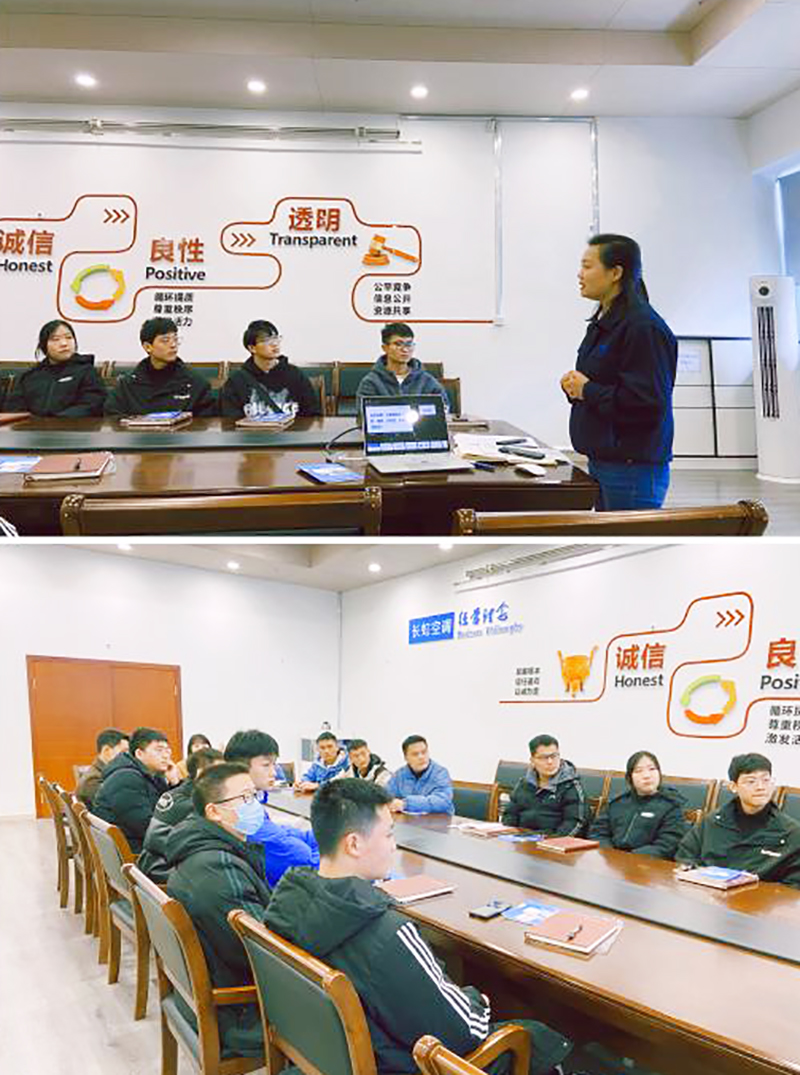 长虹空调齐增员 组织拓展永向前 特殊的今天 2月16日对于大众来说 只是一个平平无奇的星期四 但是对于这18位学子来说 是他们人生中特殊的一天 这是他们人生中的第一个重大转折 由校园学子蜕变为职场人士 希望他们能在各自岗位大放异彩 成就人生辉煌 Part 1 欢迎入职 签订入职资料 为了使新职工认识彼此,融入企业,减少入职初期紧张情绪,我们组织了新职工入职培训。通知本次培训,促进新职工了解、明确岗位工作流程,快速进入职场角色,为成为部门的中坚力量而打下坚实的基础。首先,我们签订了入职资料以及培养协议,发放职工手册、签字笔、记事本,让他们感受公司的关怀。 Part 2 空调人的自身素养 讲解公司规则制度 在资料签订、发放完毕后,行政人事部的侯娅丽老师代表长虹空调欢迎了18位学子。同时也给新员工们讲解了公司的规章制度以及重大事项,通过侯老师的介绍,大家对公司的基本规章制度已初步了解,同时也明白了作为空调人的自身素养以及空调园区内注意事项。 Part 3 安全意识培训 保持警惕和提高意识 安全意识在任何时刻都是极其重要的。制造部的任红宇老师在本次培训中给新职工们分享了空调公司的安全知识以及安全要点。通过各个企业的经典事故案例分享,唤起大家的共情心。同时也从企业火灾、交通事故等多维度出发介绍了安全,从而告诉大家人的不安全行为,物的不安全状态是导致事故发生的直接原因。相信通过任老师的介绍大家也将保持警惕和提高意识。 通过本次职场初体验,相信大家也收获颇深,将培训所得应用在后续的实习过程中,努力奋斗,为未来的成就打下坚实的基础。