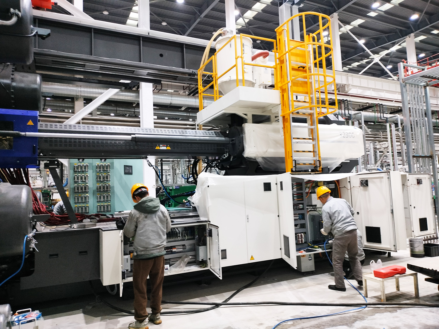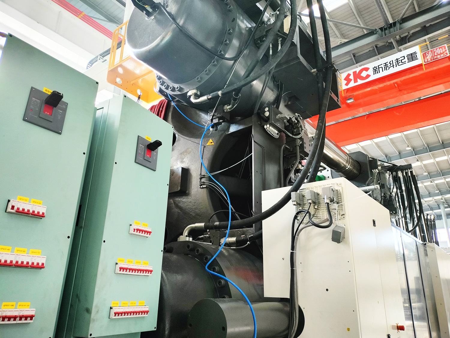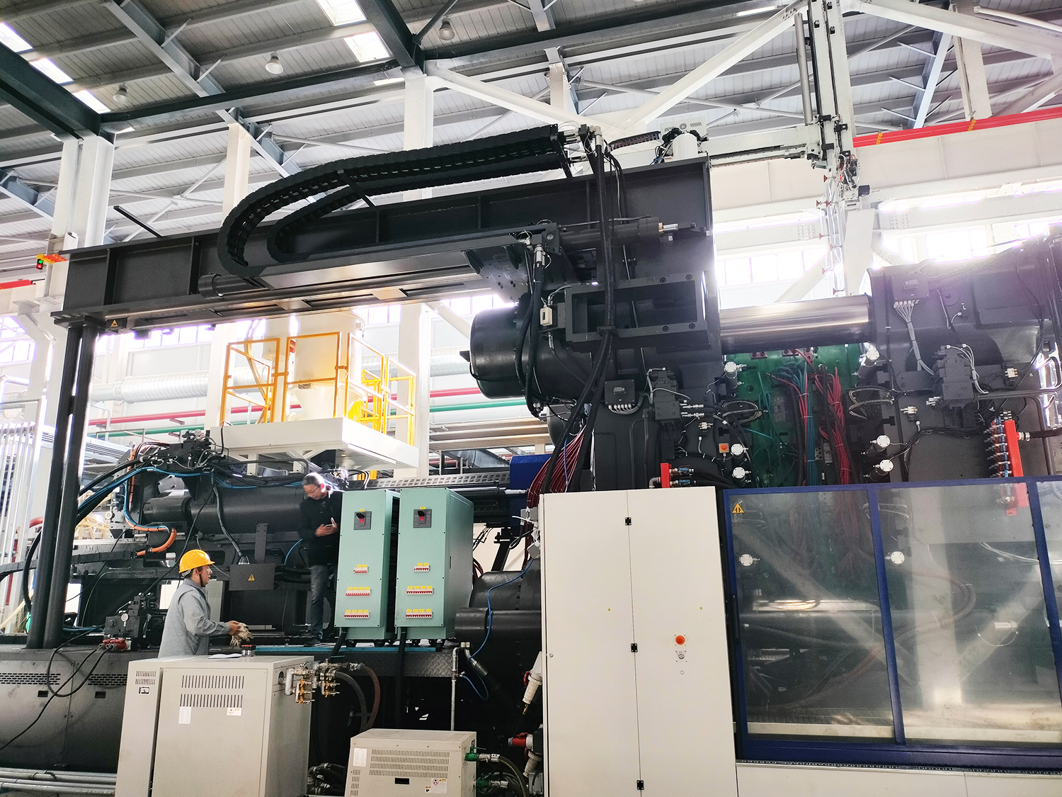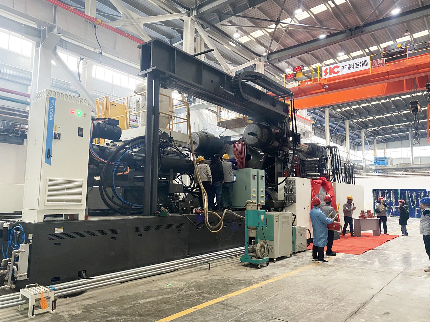 “真是个大家伙啊”、“这机床使用的模具也挺大的,还专门给安装特殊的行车!”一线职工司空见惯了650吨、1300吨这些中小型注塑机,眼前的大机床像个庞然大物,霸气十足。