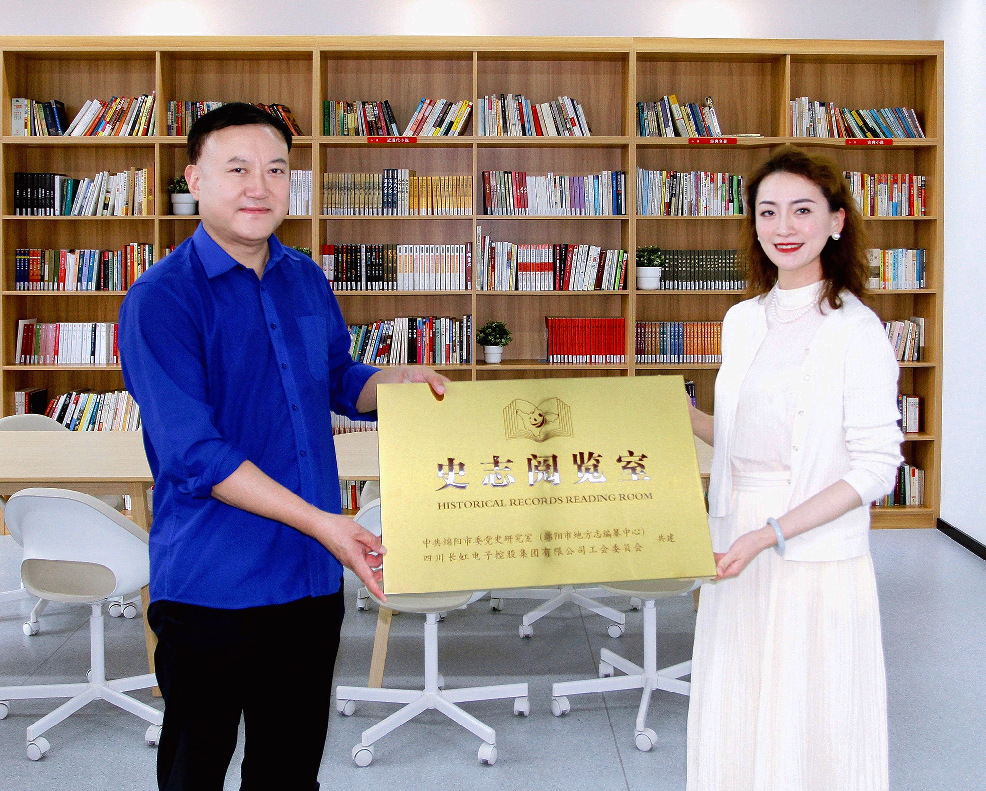 6月5日,绵阳市委党史研究室(市地方志编纂中心)主任韩贵钧率队到长虹电子控股集团有限公司“长虹职工之家”(长虹智能制造产业园)开展史志阅览室授牌活动。 在授牌仪式上,韩贵钧向“长虹职工之家”史志阅览室授牌,并代表市区党史地方志部门向史志阅览室赠送了《绵阳市志》《绵阳抗震救灾志》《绵阳年鉴》《科技城年鉴》《涪城区志》《涪城年鉴》等160余册史志书籍,极大地丰富了“长虹职工之家”职工书屋地方文献藏书。标志着长虹职工之家书屋成为绵阳市首家企业史志阅览室。 在随后的座谈中,双方对交流合作提出相关建议,一是以史志阅览室为平台,围绕史志文化、地方优秀文化、企业文化开展专题阅读分享等活动,让史志成果更好地贴近企业职工、服务企业发展,为增强企业职工凝聚爱家爱乡情怀、助力企业文化建设发挥作用;二是以史志“七进”活动为抓手,双方不定期开展座谈交流,及时向史志阅览室补充绵阳市内党史地方志编研成果;三是及时掌握长虹职工对史志书籍阅读需求,把史志文化阵地建设好、使用好。 长虹职工书屋读书平台自建设以来,控股集团工会依托该平台不断创新活动形式,充分发挥“职工书屋”的文化功能,开展丰富多彩、形式多样的特色读书活动,打造了“职工书屋+特色活动”文化品牌。 “长虹职工之家”职工书屋 《长虹职工生活公众号 》职工电子书屋
