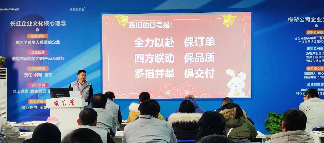 2月1日下午,长虹模塑市场营销中心组织塑料四厂、小件事业部、表面装饰部、物料供应链相关负责人在经开区空调园区J04塑料四厂会议室开展“奋战开门红”空调旺季保产启动会 会议由市场营销中心宋兴勤经理主持,市场营销中心杨成林部长对空调业务进行了整体阐述,围绕“零投诉交付、争取份额最大化”目标,做到跟进空调规划、跟踪每月计划、紧盯每周排产、保障每日交付,对接客户以专业服务心态交流、转变观念,互助共赢。杨部长重点强调订单交付保障要求:从订单下达、计划排产、原料输入、物料供应、新品试制等方面逐项落实,各生产单位、平台部门密切配合、及时沟通反馈、全力保障空调交付。 启动会上,塑料四厂厂长潘秋华结合当前形势,与兄弟单位共同探讨空调旺季保产举措。潘厂长提出:安全关系职工生命,品质关系企业生命,我们要以管理安全的心态去管理品质,以“快速、专业、态度”,严格落实品质标准,扎实把好品质关,做好过程管控,对于客户反馈的问题,第一时间到达现场去解决和处理。 会后,全员统一思想并宣誓: 全力以赴,保订单; 四方联动,保品质; 多措并举,保交付。