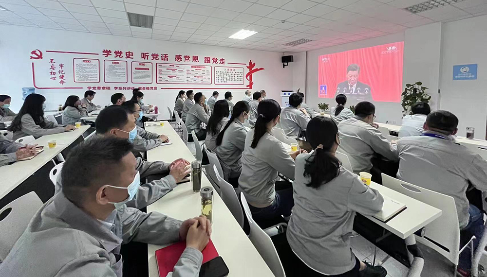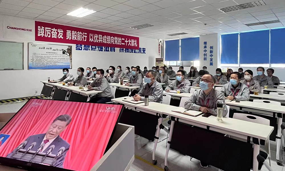 10月16日,上午十点,长虹模塑公司党委组织党员领导干部,党工团组织代表在双创园培训室集中收看党的二十大开幕式直播,认真聆听习近平总书记所作的报告。
