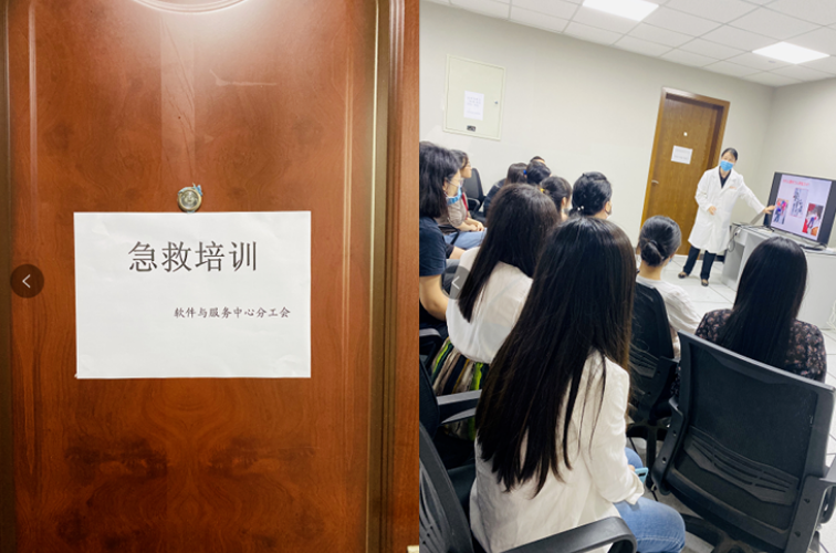 为普及广大职工的应用应急知识和急救技能,提高职工健康意识与自救互救水平,9月11日,软件与服务中心邀请体检中心医护人员,分工会组织成都地区的职工开展现场急救知识培训。 此次培训采用理论和实践相结合,培训过程中,员工们认真听讲,并做好学习笔记,积极参与互动,通过生动鲜活的现场演示,掌握了海姆立克法、心肺复苏术等相关知识及操作要领。 医护人员在培训现场对模拟病人进行示范操作,员工通过急救实践,提高了应急处置能力,掌握急救知识,减少伤残,为获得生命赢得更多时间。 成都地区职工自救互救知识培训圆满结束,第二期绵阳地区职工培训即将开展。软件与服务中心通过提高职工应对突发事件和意外伤害的应变能力,增强了安全救援力量,为公司安全生产保驾护航。