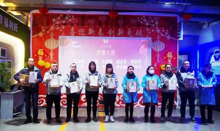近期,塑料二厂在G03厂区,进行年度表彰及新春奋战誓师大会,二厂党政工团与全体职工在一片喜庆祥和及振奋人心的氛围中,齐聚一堂,进行年度优秀职工表彰和颁奖,同谋兔年大业,吹响奋进的冲锋号,全员奋战开门红。 分厂党支部书记及厂长周明,首先致新春贺词,他总结了2022年,在全体职工不懈努力之下,克服重重困难,突破多重障碍,抓成本、重效率、促创新、聚合力,取得了较好成绩,这是大家辛苦付出和团结奋战的结果,感谢大家一年的紧密团结、协力攻坚。新年也开始了,我们面临新的机遇和挑战,需要大家再接再厉,再创佳绩。最后预祝大家春节快乐,阖家幸福。 随后是表彰优秀环节,分厂对评选出创新之星、质量之星、降本之星、新锐之星、效率之星、服务之星、防疫保产之星、高温保产之星、信得过职工等在各个岗位业绩突出、表现出色的职工代表,予以现场颁发奖状及奖品,鼓励他们戒骄戒躁,在新年做好标杆模范,领航带头,做出新的贡献。 接下来,是一线职工准备的文娱表演节目,舞蹈喜庆热闹,歌曲深情感人,并穿插着互动游戏和抽奖活动,让现场热情升腾,喜乐融融。 最后,是新春奋战誓师活动,周厂长领诵誓词,各部门主管、工段长、班组长都上台宣誓。大家精神抖擞,口号嘹亮,为新的目标导向、新的业务方向,吹响了新年奋战的冲锋号;大家团结一心,以时不我待的急迫感、舍我其谁的担当感、以奋斗的姿态,迈出崭新激扬的新步伐。