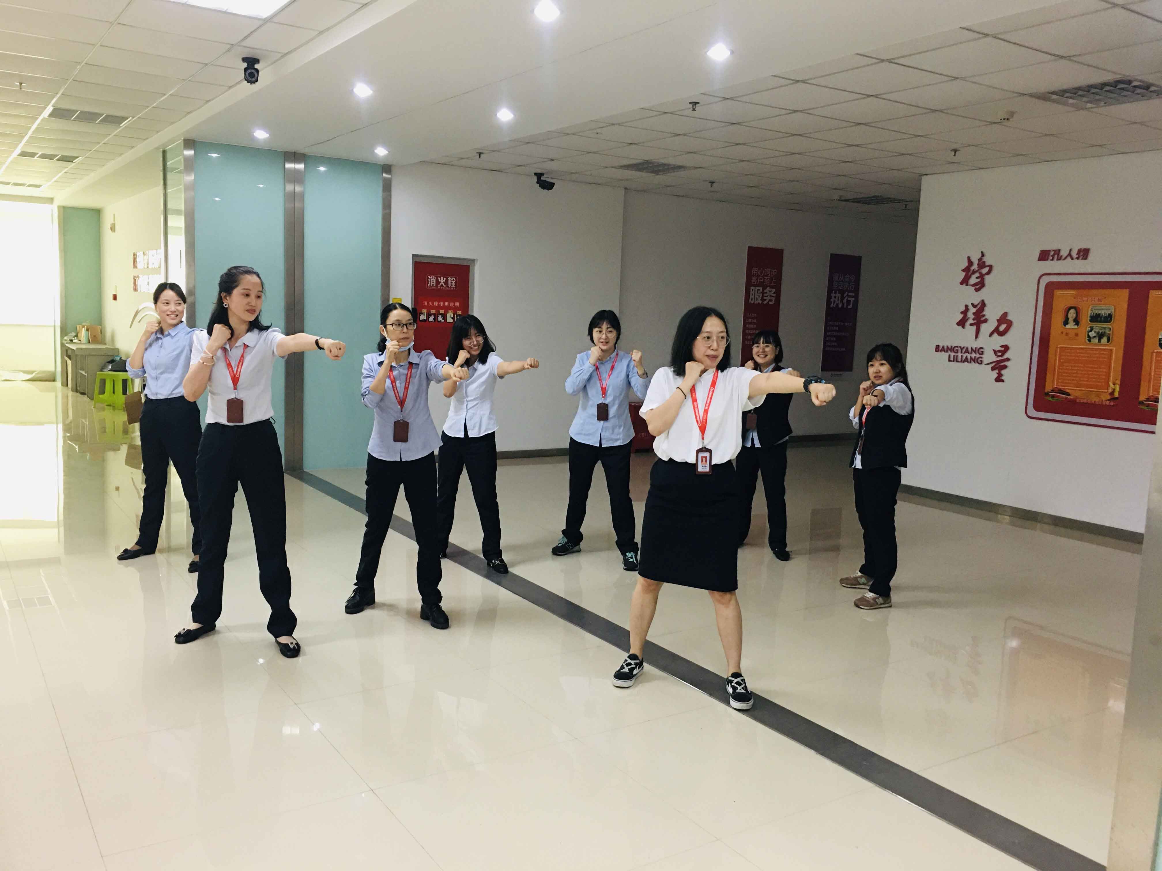 通过开展搏击操训练,能够有效缓解员工身心负荷,能够促进多方面发展员工综合素质,同时也增加了不同部门间相互交流的机会,有利于提升公司活力!