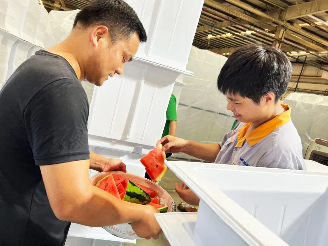 炎炎夏日 酷暑难当 伴随气温的不断升高 为一线工人的工作 带来了更严峻、更艰苦的“烤”验 做好防暑降温,促进安全生产 长虹美菱工会积极组织并开展高温慰问活动,为奋战在高温一线的职工送上防暑降温物品,把清凉送到一线,把关爱送到职工心里,表达诚挚关怀。 工会“送清凉” 温暖入心房 各单位陆续将福利送到职工手中 此外,为进一步促进防暑降温工作的推进,保证职工安全生产,各单位自主持续开展送西瓜、送绿豆汤、送冰棒、冰块降温等形式多样的送清凉活动,强化防暑降温工作,加强企业安全生产,改善职工工作条件,为公司的生产经营保驾护航。 吃在嘴里 甜在心里 竭尽所能 表达每一份关爱 公司领导及相关负责人纷纷表示,“安全、健康始终是第一位,在保证安全生产的前提下,大家一定要注意防暑降温,注意劳逸结合,增强安全和健康保护。” 高温下 仍然坚守岗位的你们 用汗水诠释责任和担当 向你们致敬 谢谢你们,辛苦了!
