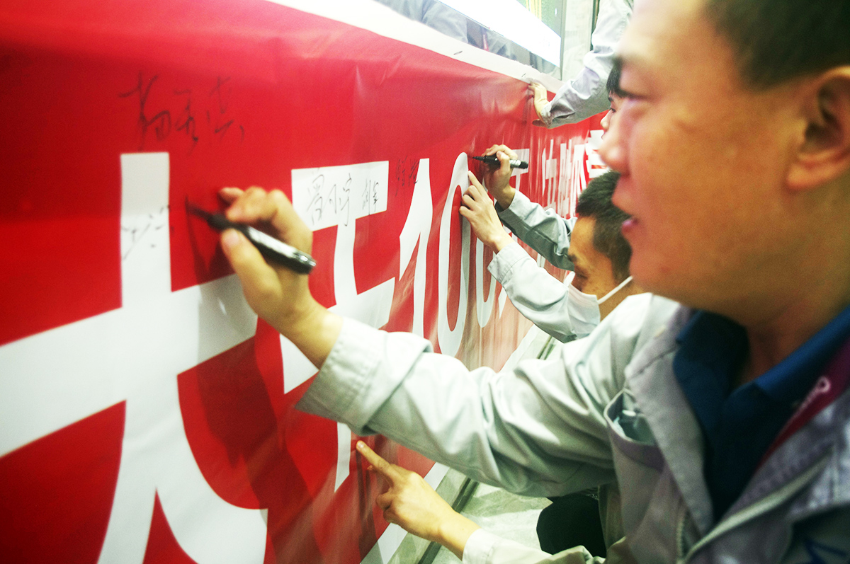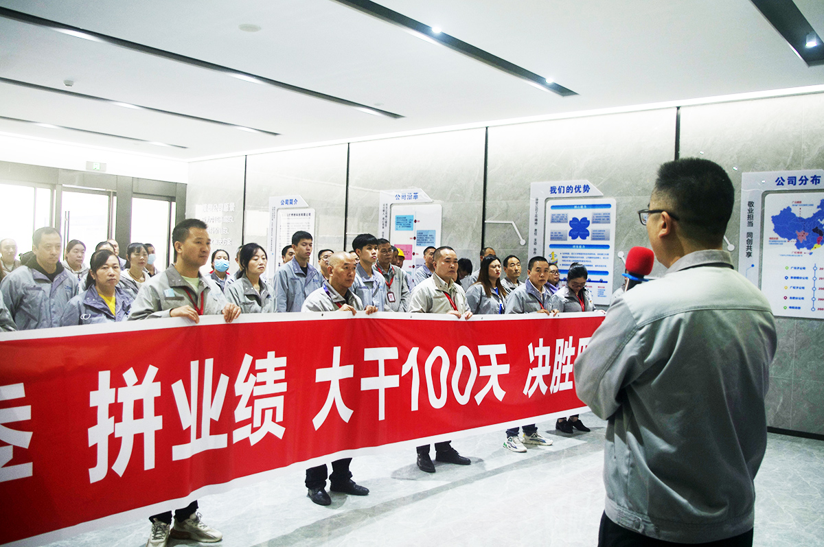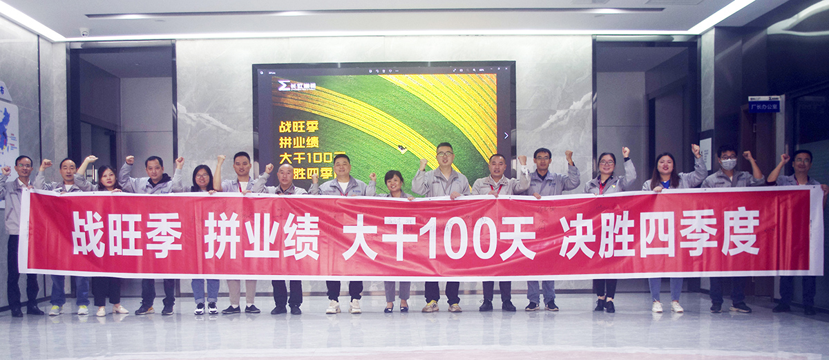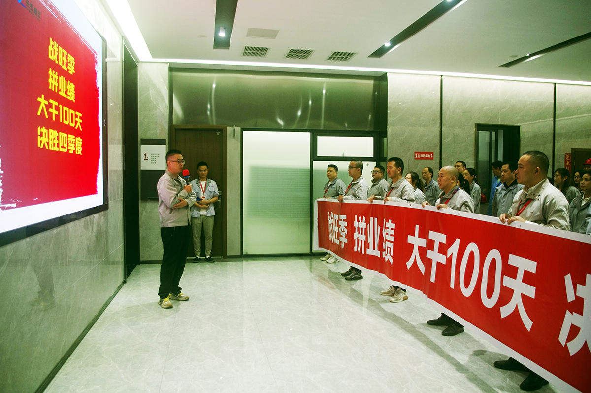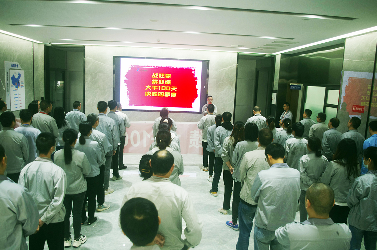 塑料二厂在G03厂区,组织开展“战旺季,拼业绩、决胜四季度”动员大会,二厂党员骨干、职能技术管理人员、班组长、职工代表等70多人参加了大会,并在奋战横幅上签字。 动员大会由邓胜杰主持,他从大环境分析当前生产经营的压力和紧迫形势,四季度是传统家电的旺季,新品暴增,产量大涨,面临挑战和机遇,我们必须勇毅前行,奋战拼搏,有订单才有收入,有收入才有价值,这是生产长跑最后百日冲刺的关键时段,必须加快当前的生产节奏,提效提质,全厂上下要认清非常之势、强化非常之举、担当非常之责,以决战决胜之势,奋战四季度大干一百天,让我们以“等不起”的紧迫感、“慢不得”的危机感、“坐不住”的责任感,万众一心、星夜兼程,创造新业绩、干出新天地!全体员工上下一心,决胜四季度!雄起! 随后是生产主管何成介绍四季度生产情况和工作安排,面对困难奋战工作部署;生产管理杨秀洪宣读劳动竞赛和激励方案,设置了提效冠军等奖项,号召大家提效增量,勇创佳绩。 接下来是表决心动员环节中, 党支部副书记张俐号召党员同志立足岗位,躬身敬业,在奋战中发挥核心攻坚力量,为分厂生产经营发挥更大作用,创造更大价值。 注塑、部件工段长也发表了动员表决心的讲话;技术科长号召技术工程人员全力协作,集中精力,为生产保驾护航。 周厂长最后做动员讲话,他说到,上半年我们是淡季,希望订单多,下半年我们订单多了,是希望如何高效高质完成这么多的订单。年底是家电产品的黄金时机,在订单多和新品多的挑战面前,我们必须凝心聚力,锚定目标,攻克难关,分秒必争,大干特干,以冲刺的状态、奋进的姿态,创造新业绩、干出新天地!奋战秋冬好时节,勇毅前行保订单,战旺季,拼业绩,大干100天,决胜四季度!为客户交出合格产品,为公司交出满意答卷,塑料二厂加油! 最后,参会人员在奋战横幅上签字,激励自己立足岗位,激情奋斗,为奋战任务的完成鼓劲加油。