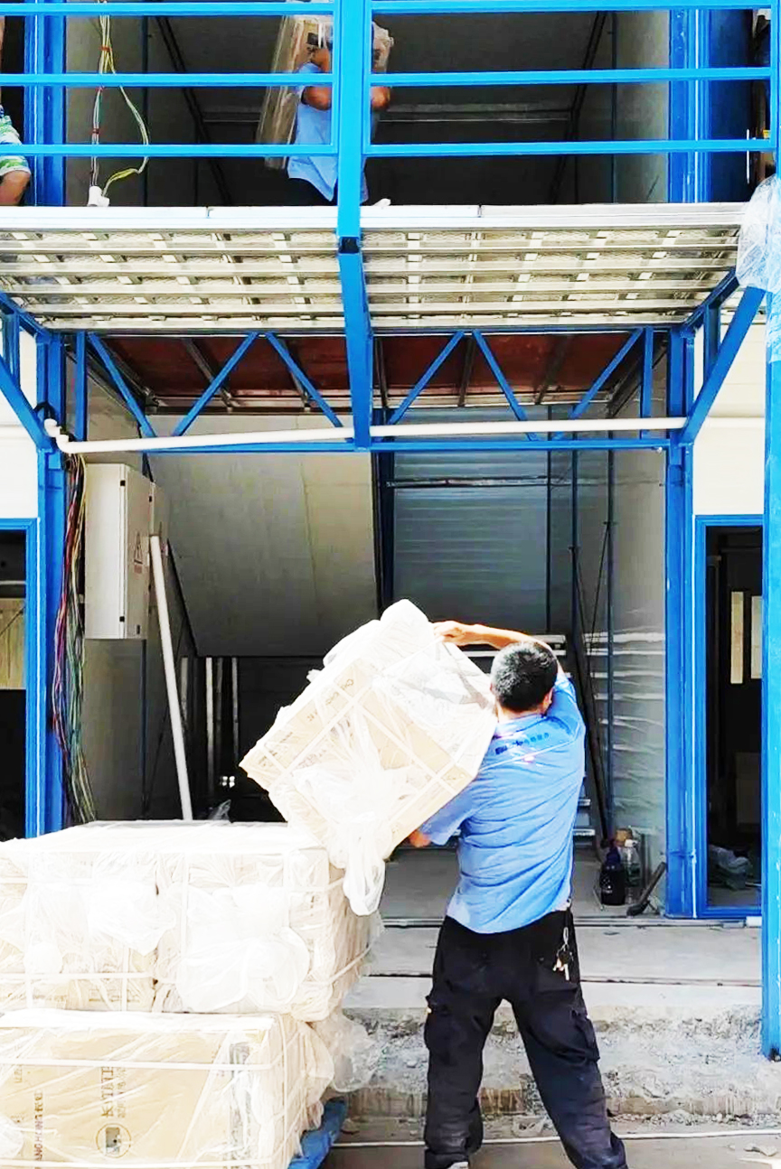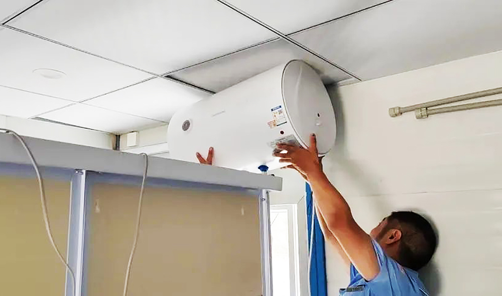 8月22日早上7:00,快益点南充分公司安装突击队集合完毕,7:30抵达集中隔离点。南充市当天最高气温42℃,快益点服务工程师顶高温战酷暑,在烈日下扛着热水器转运至房间,身上的工作服早已被汗水湿透。
